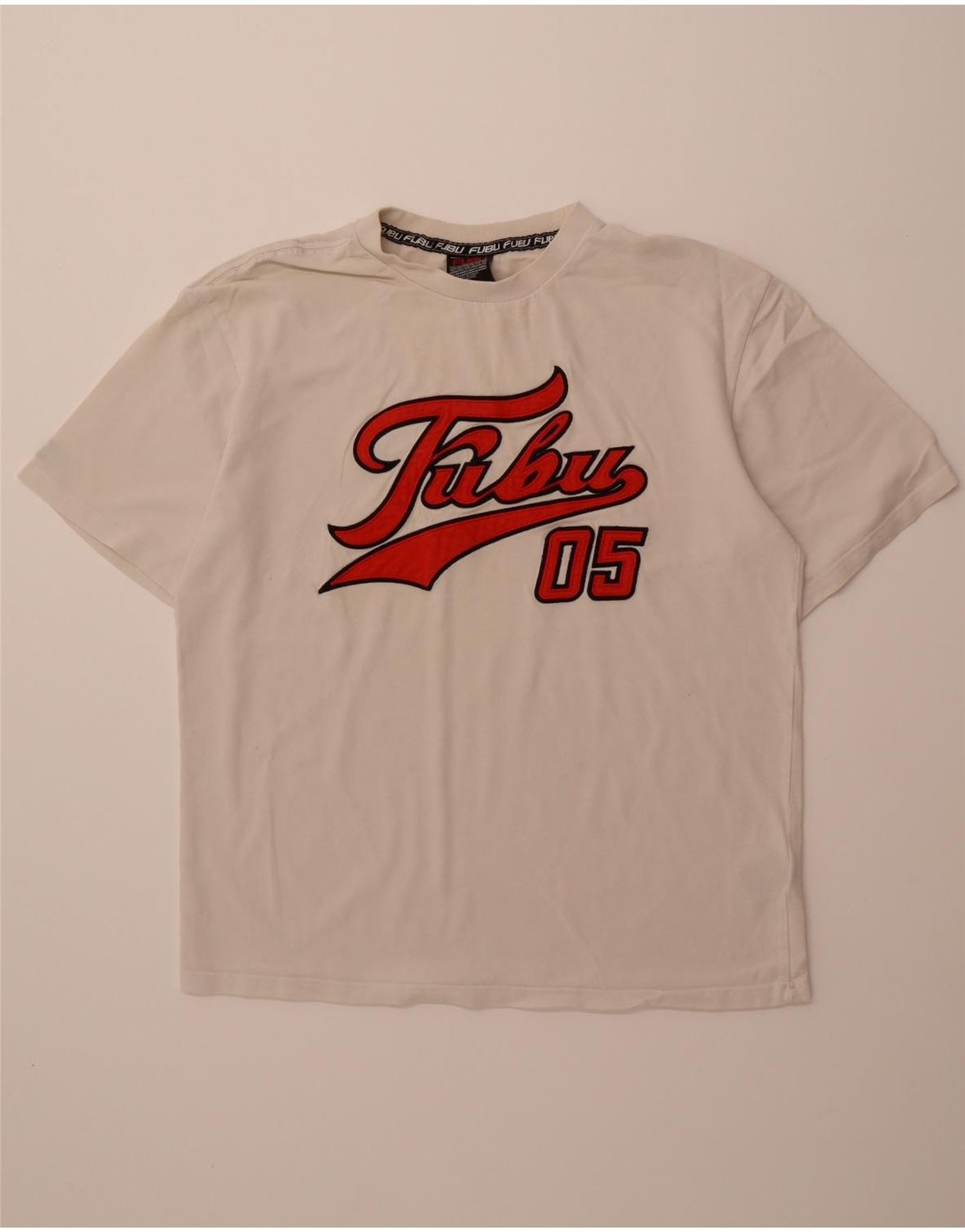 Camiseta masculina gráfica FUBU top pequeno algodão off white