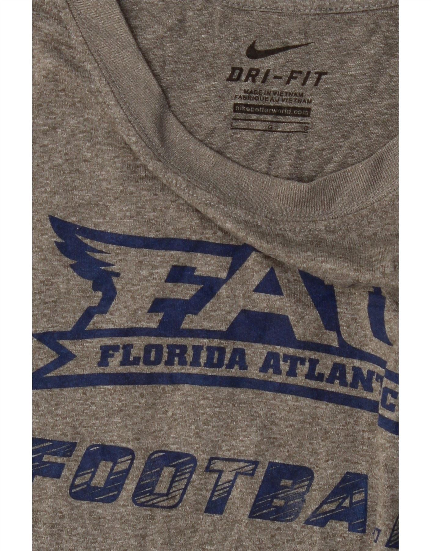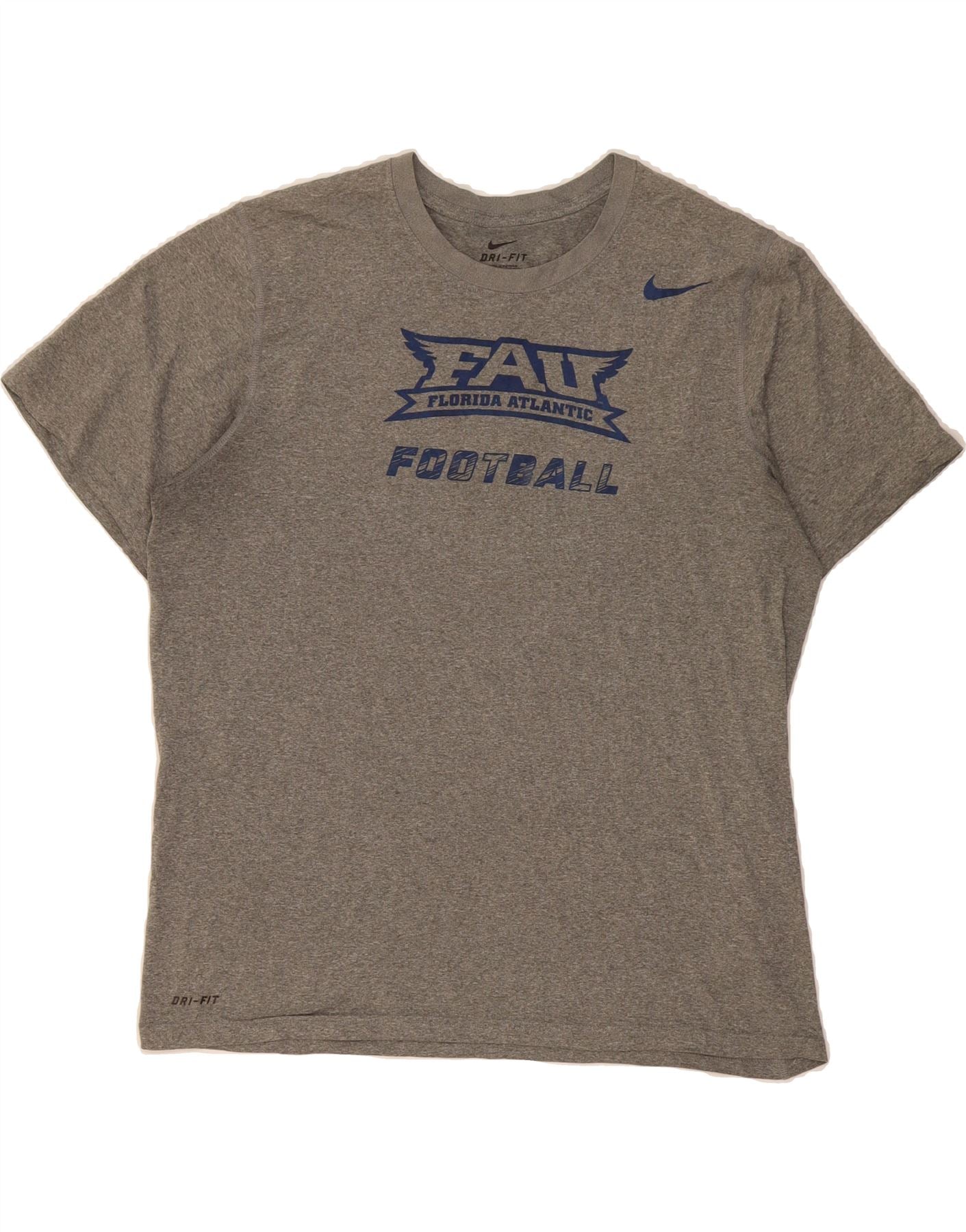 Camiseta masculina Nike Florida Atlantic Owls com estampa de futebol grande cinza