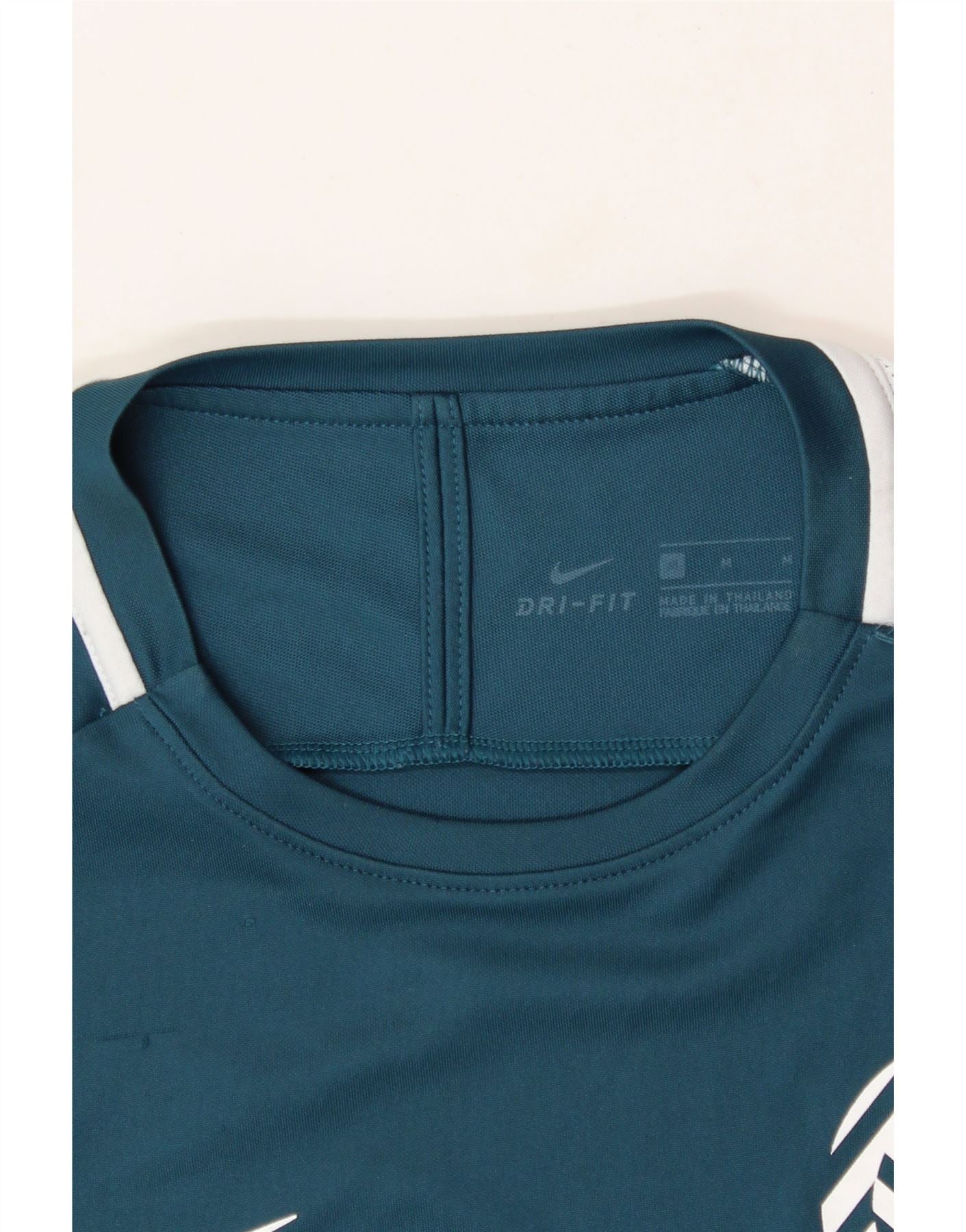 - Descrição da IA: Eleve o seu vestuário desportivo com esta t-shirt Nike usada. Confeccionada em malha de poliéster respirável, esta blusa masculina apresenta padrão geométrico e mangas curtas. A gola redonda e o ajuste regular garantem conforto, enquanto o gráfico marcante e o logotipo acrescentam um toque esportivo. Apesar de pequenas descolorações e manchas na frente e nas costas, esta camiseta azul, fabricada na Tailândia, permanece em boas condições. Tamanho da etiqueta: M. Perfeito para esportes ou uso casual.