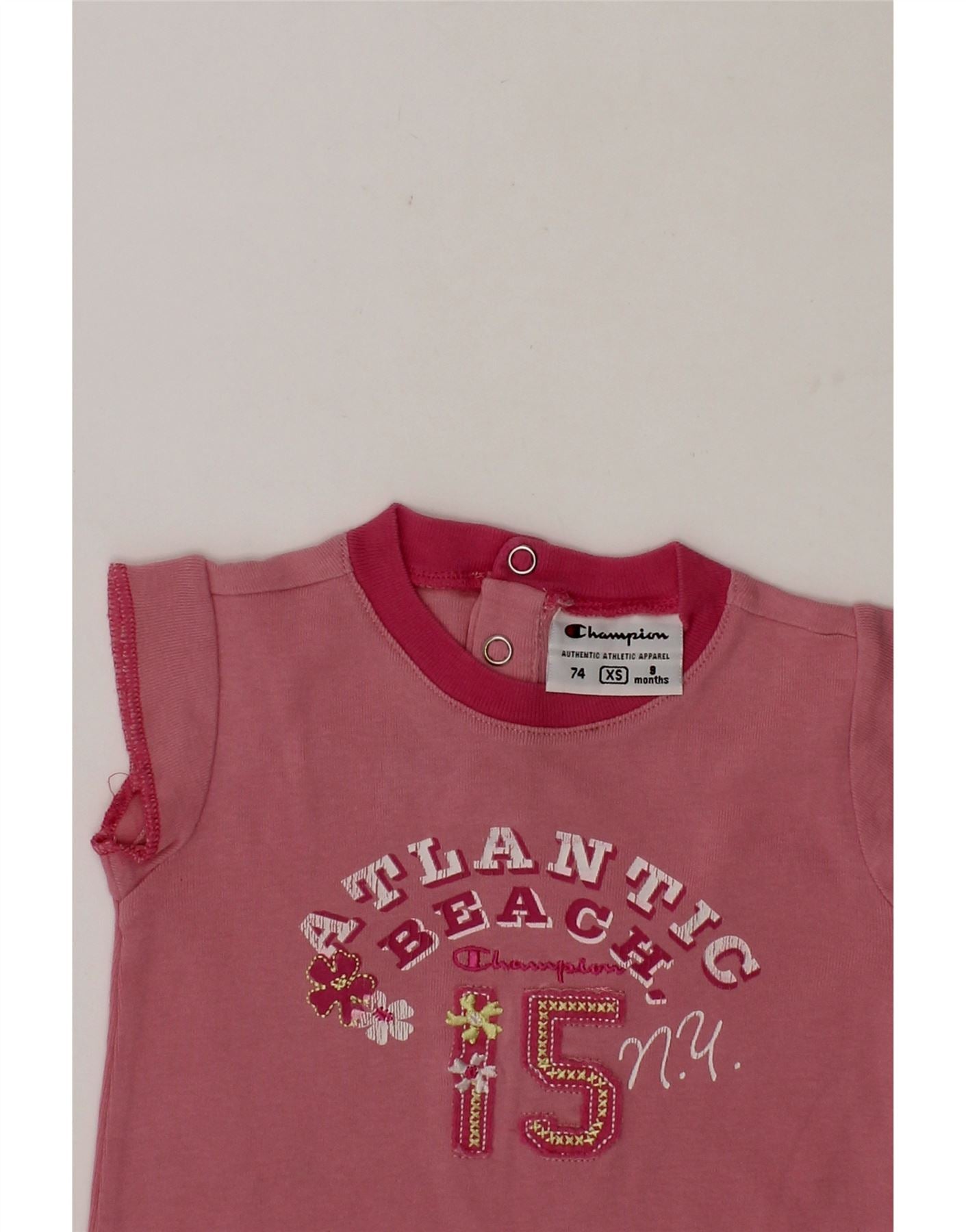 CAMPEÃO Camiseta estampada para bebês meninas 6-9 meses XS algodão rosa