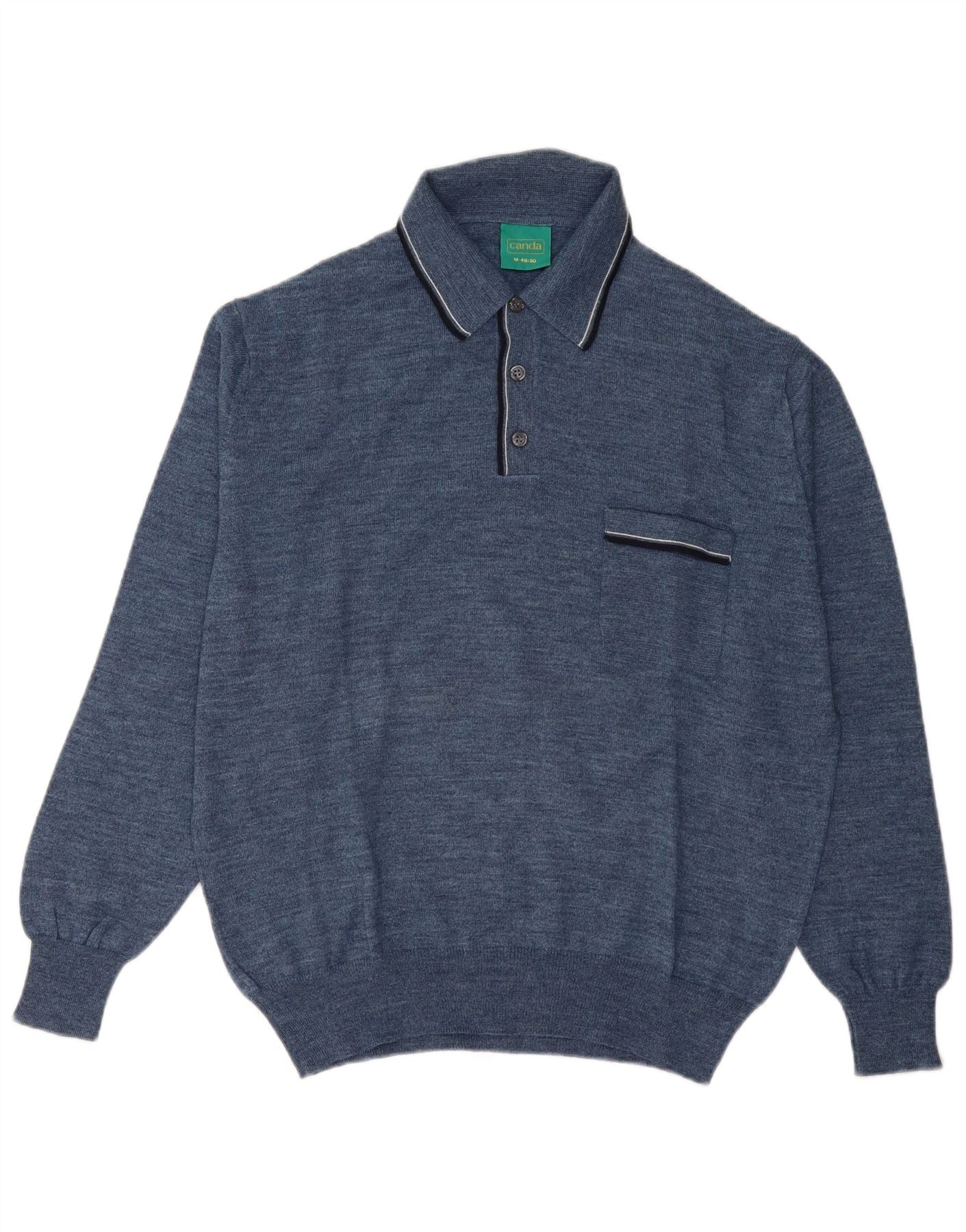 Suéter masculino Canda com gola polo IT 48/50 lã virgem azul médio