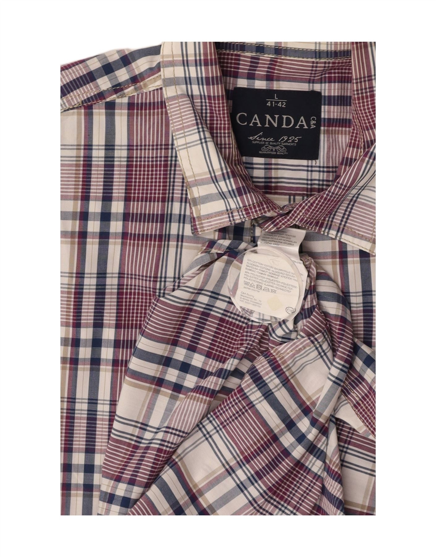 Camisa masculina de manga curta CANDA tamanho 41/42 grande algodão xadrez multicolorido