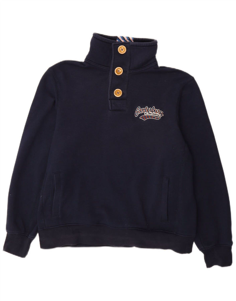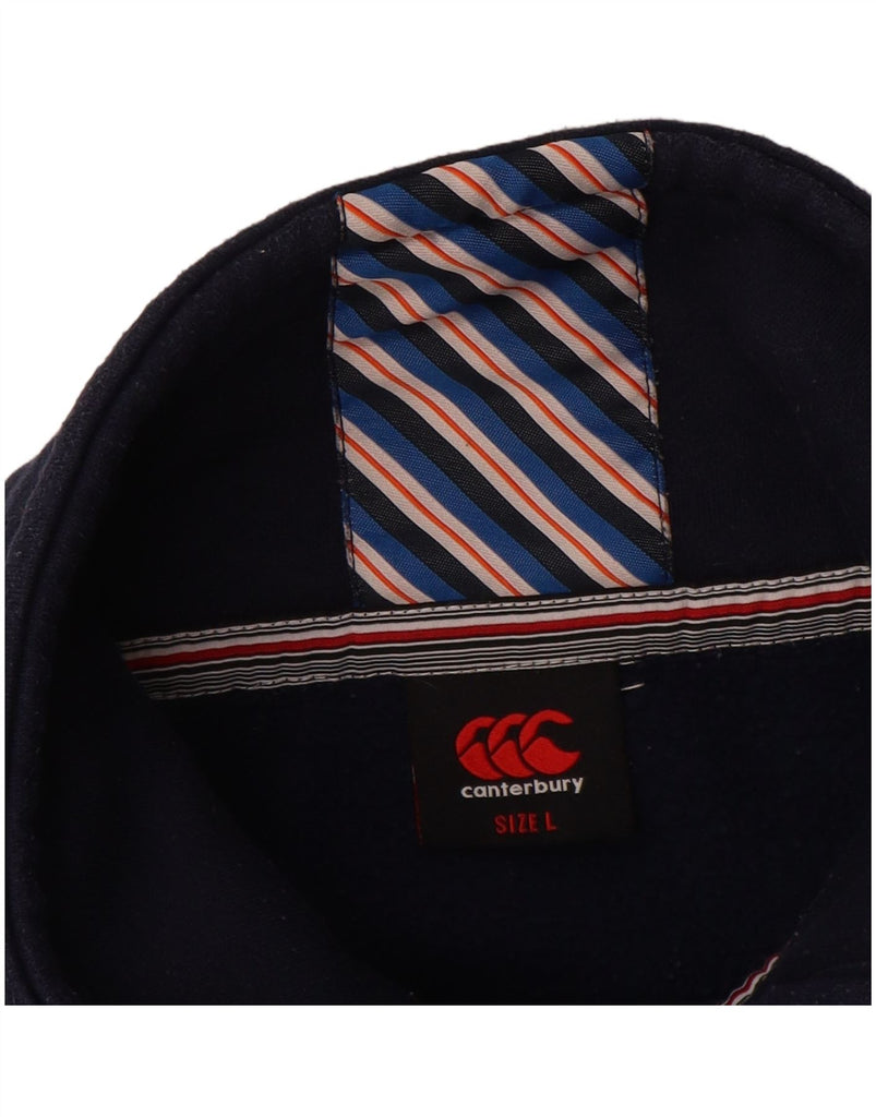 CANTERBURY Mens Button Neck Sweatshirt Jumper Large Navy Blue Cotton