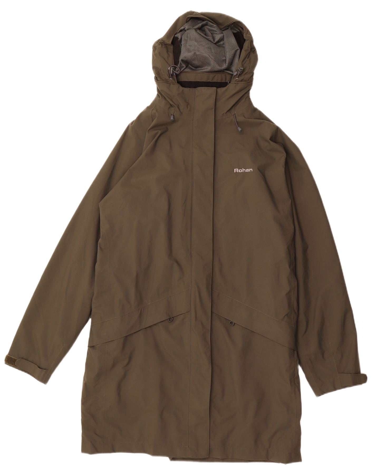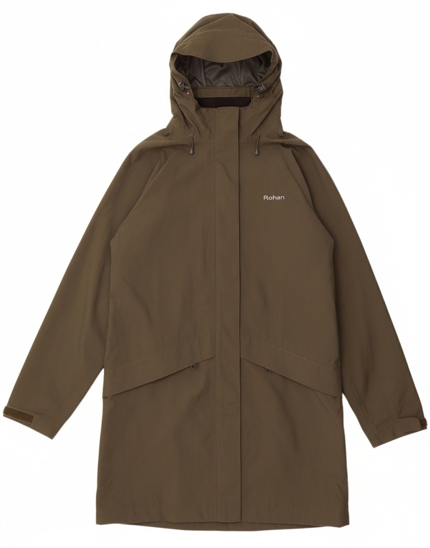 - Descrição da IA: Esta jaqueta impermeável feminina Rohan é confeccionada em poliéster cáqui durável, apresentando uma membrana hidrofílica de PU respirável. Seu fecho de correr completo e gola alta oferecem excelente proteção. Um capuz fixo e mangas compridas proporcionam cobertura completa. Este casaco de corte regular inclui bolsos práticos, perfeitos para atividades ao ar livre.