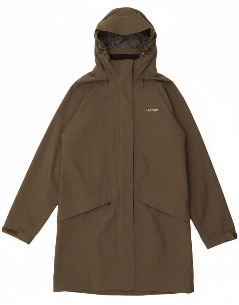 Capa de chuva feminina com capuz ROHAN UK 16 grande poliamida cáqui