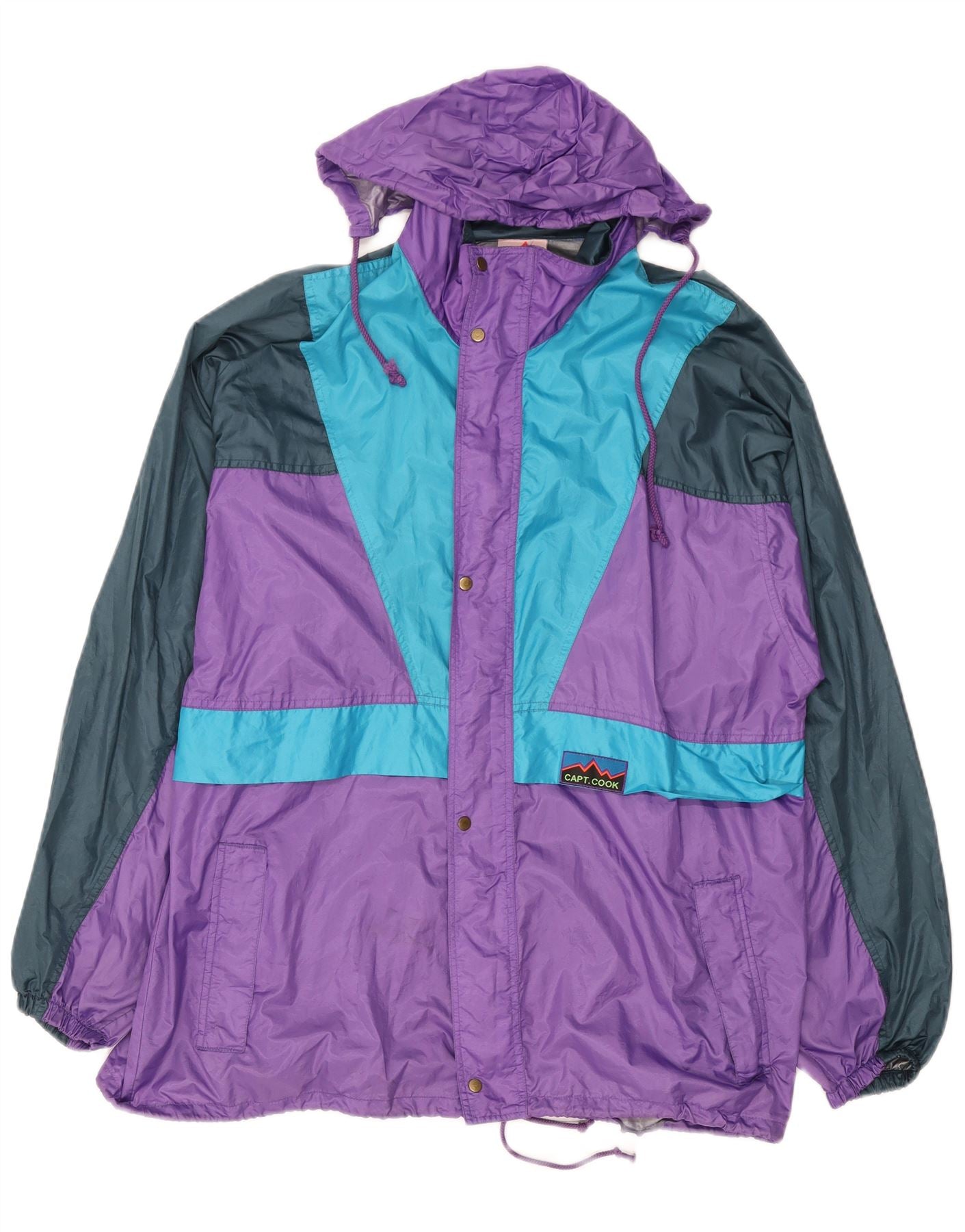 Jaqueta de chuva masculina Capt. Cook com capuz Reino Unido 44 2XL roxo Colourblock retrô