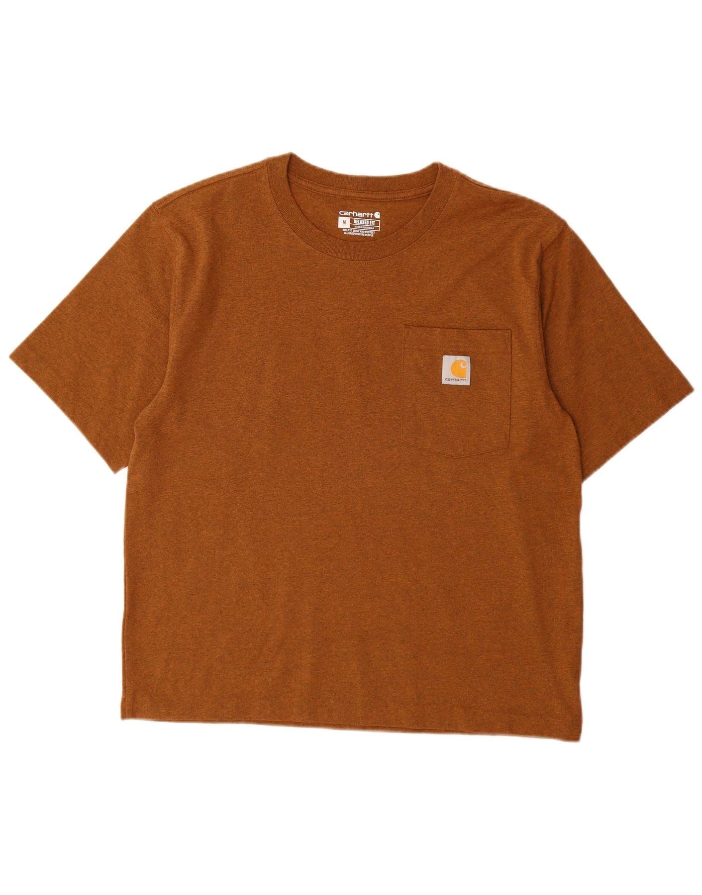 Home > Roupas Vintage Carhartt > masculino > Camiseta masculina CARHARTT com ajuste relaxado, algodão manchado marrom médio
