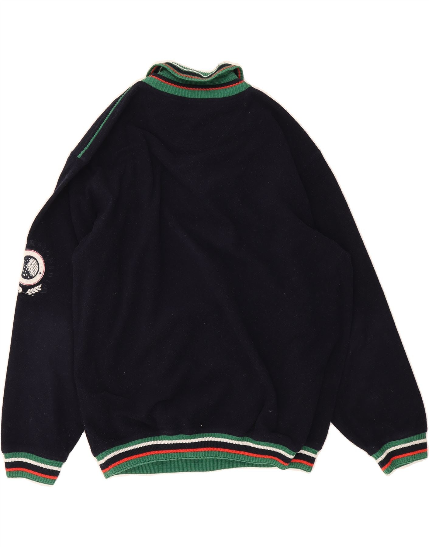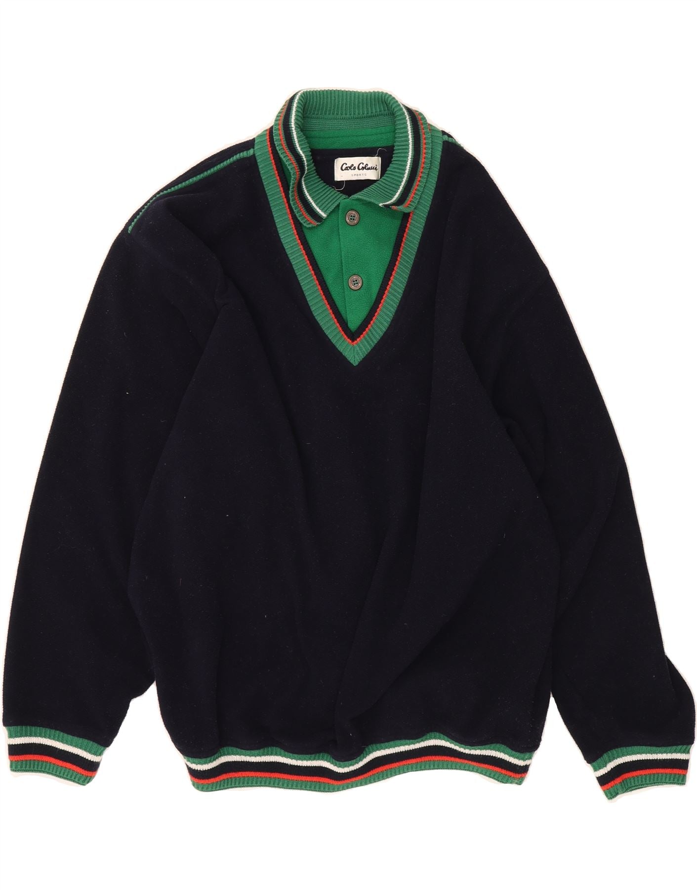 - Descrição da IA: Este suéter vintage azul marinho com decote em V usado é uma adição elegante a qualquer guarda-roupa. Confeccionada em poliéster com construção em malha, possui estampa listrada, mangas longas e modelagem regular. O suéter inclui decote com gola e fecho pulôver. Existem alguns pequenos sinais de desgaste em geral. Tamanho da etiqueta M. Perfeito para um look formal.