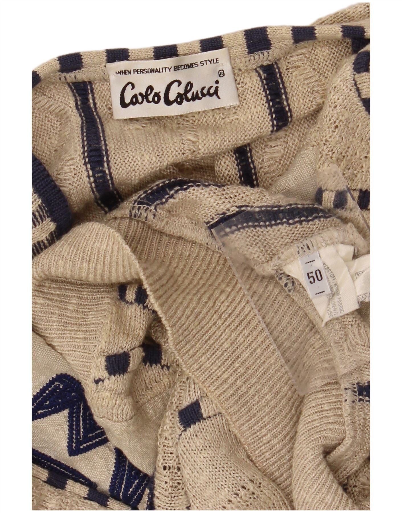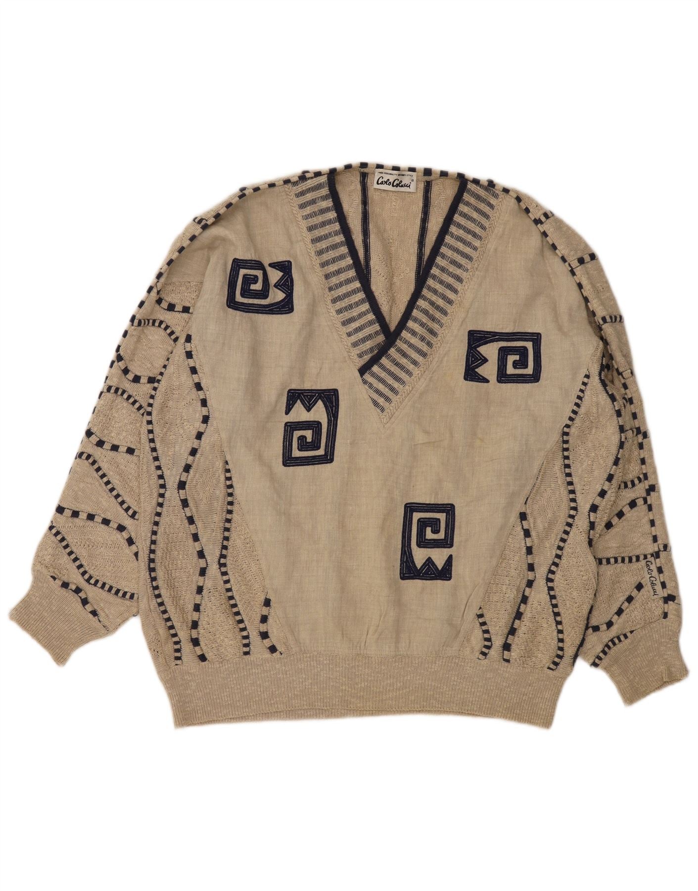 CARLO COLUCCI Suéter masculino com decote em V IT 50 médio bege geométrico
