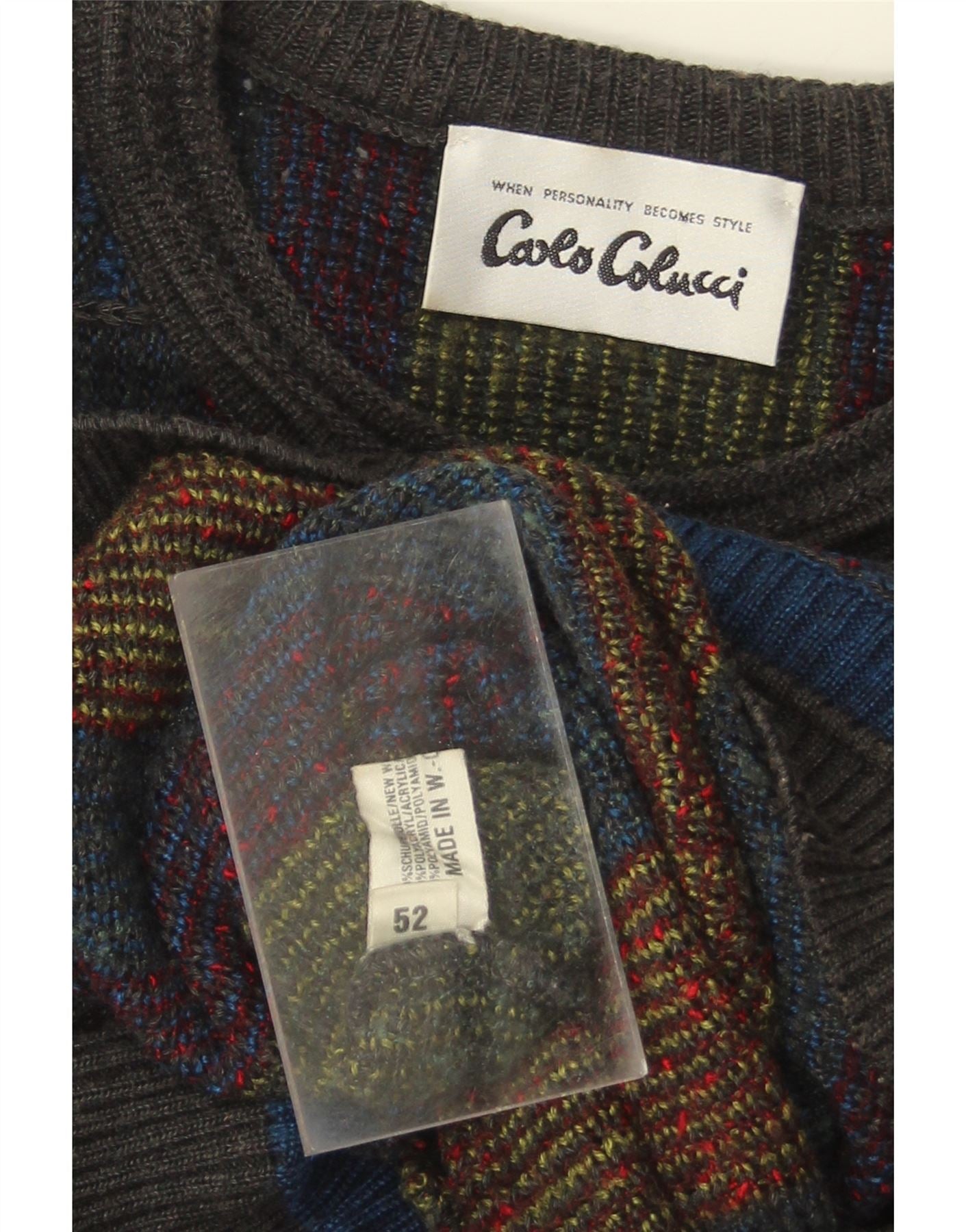 CARLO COLUCCI Suéter masculino com gola redonda IT 52 grande multicolorido