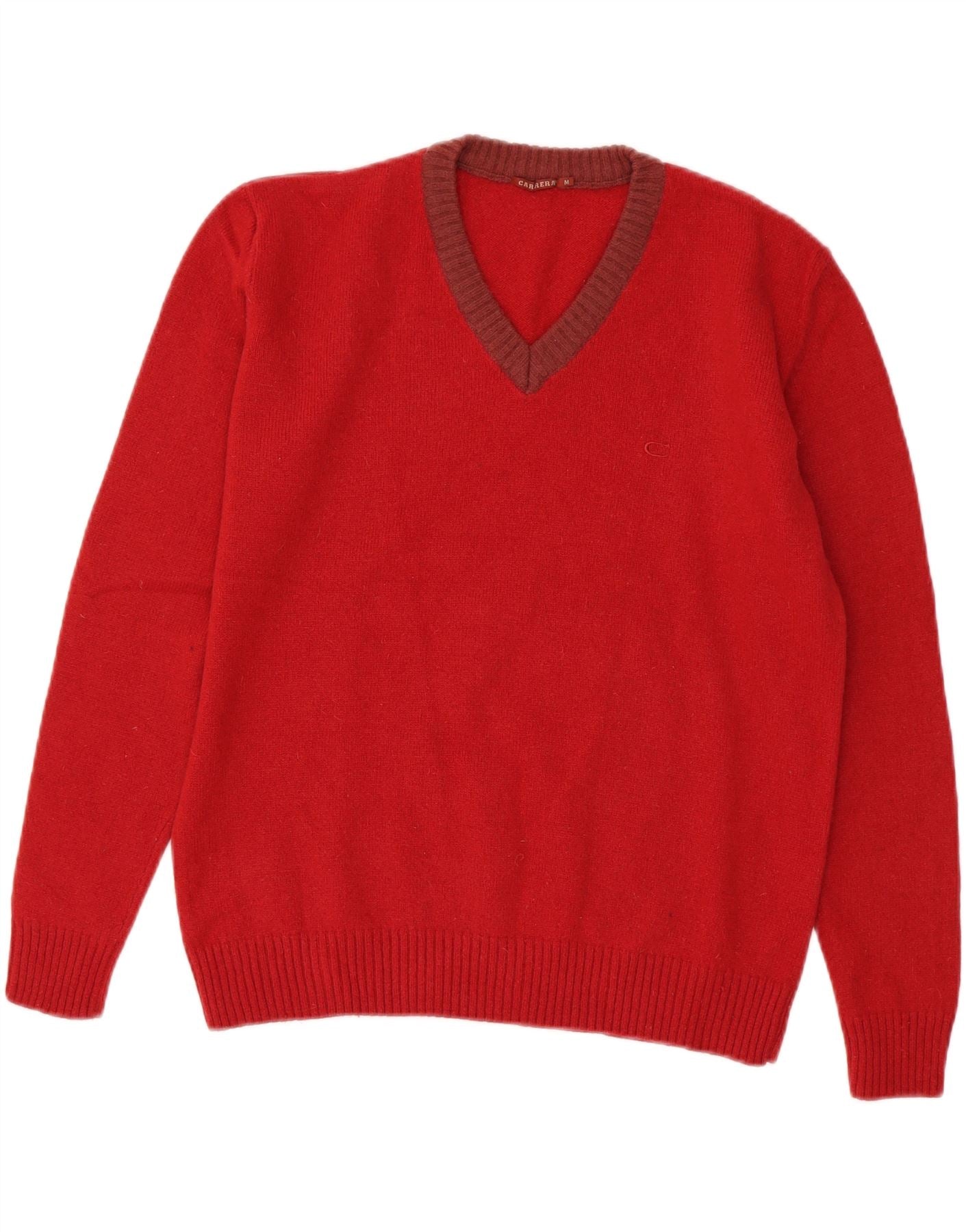Suéter feminino CARRERA com decote em V Reino Unido 14 lã vermelha média