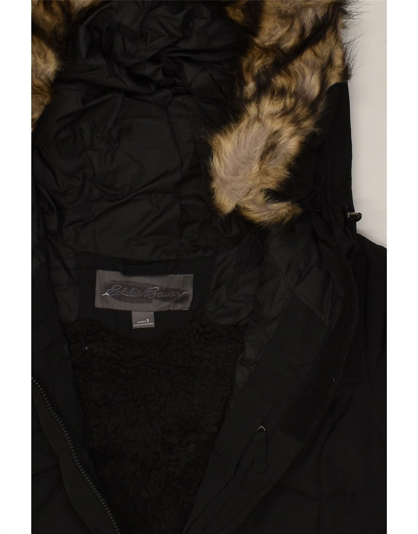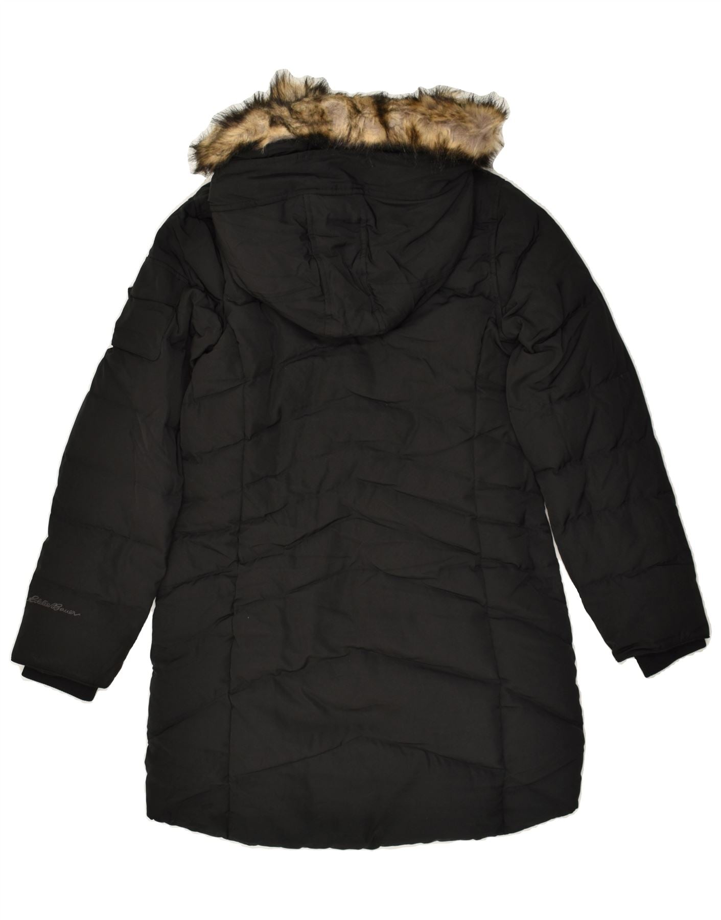 Casaco acolchoado com capuz feminino EDDIE BAUER UK 10 pequeno poliéster preto
