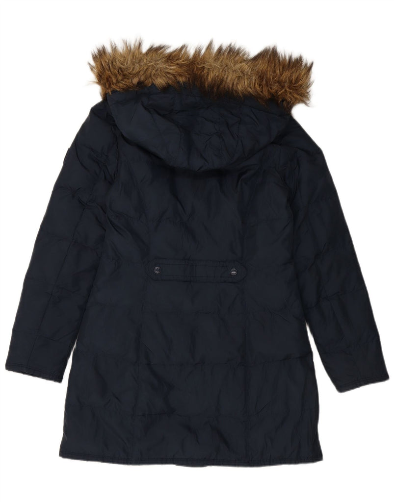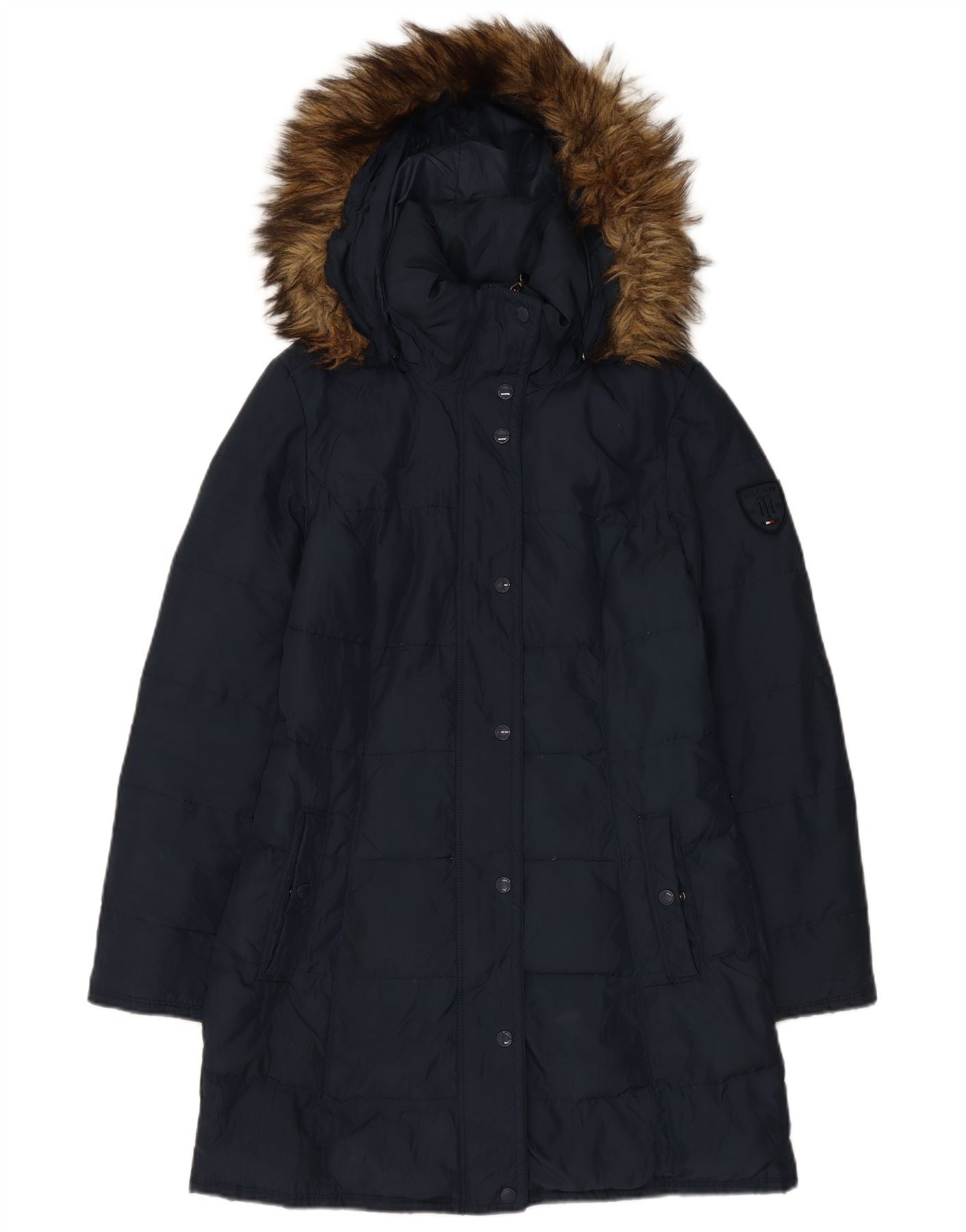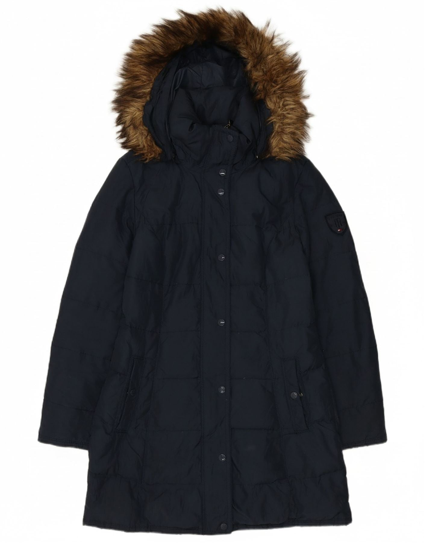Casaco acolchoado com capuz feminino TOMMY HILFIGER Reino Unido 10 pequeno azul marinho poliéster