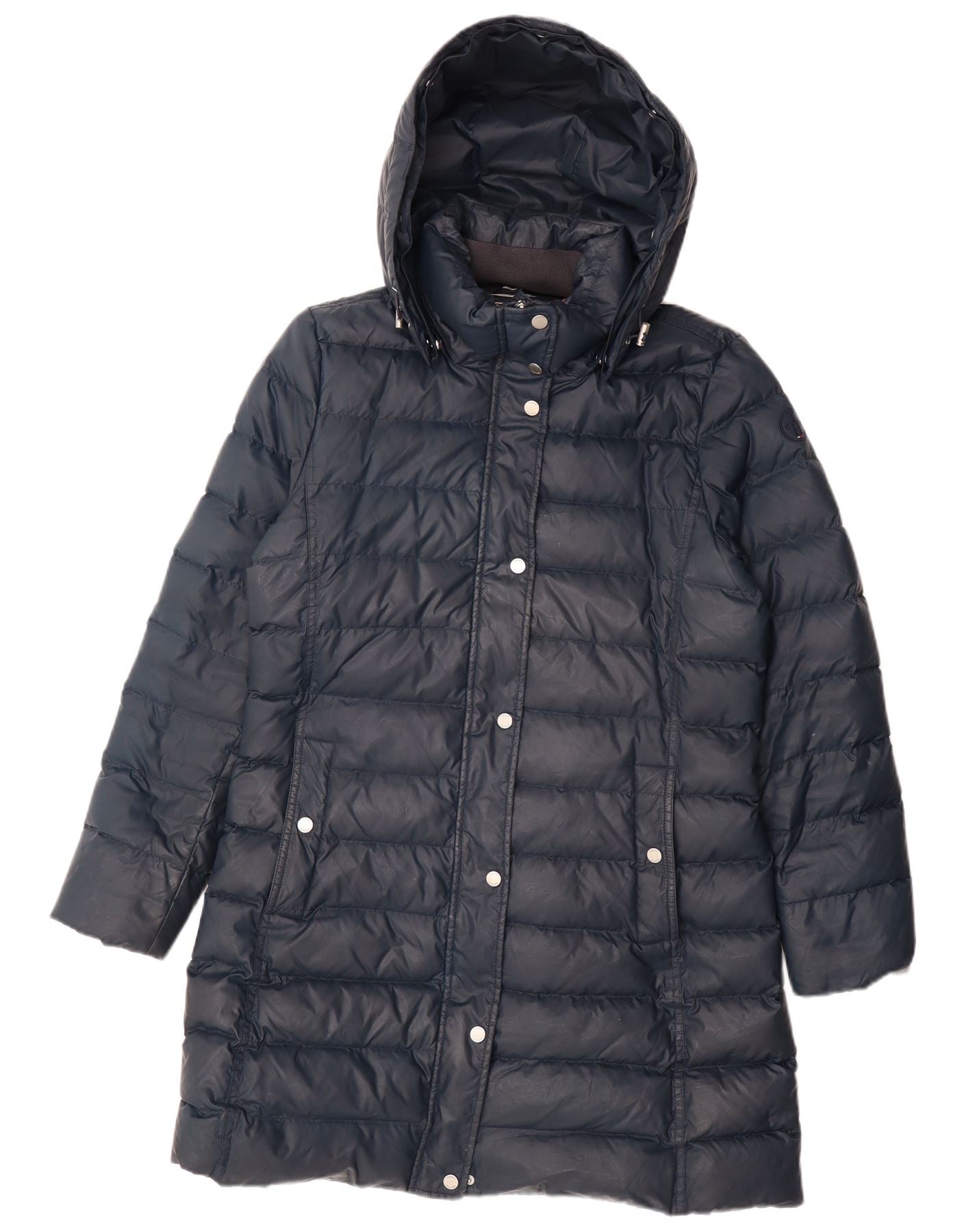 Casaco acolchoado com capuz feminino TOMMY HILFIGER Reino Unido 14 grande poliéster azul marinho