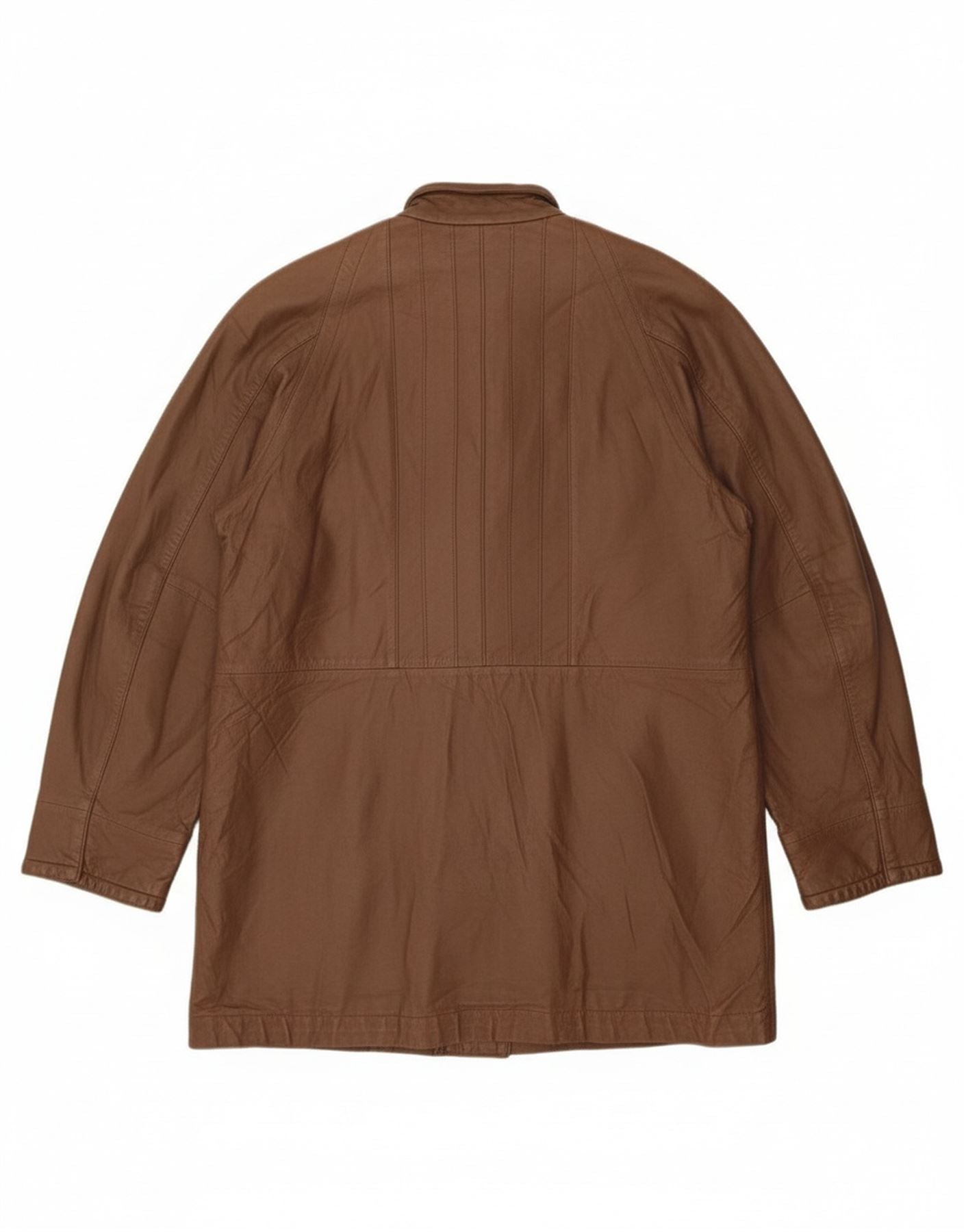 Casaco feminino de couro superdimensionado VINTAGE IT 42 couro marrom médio