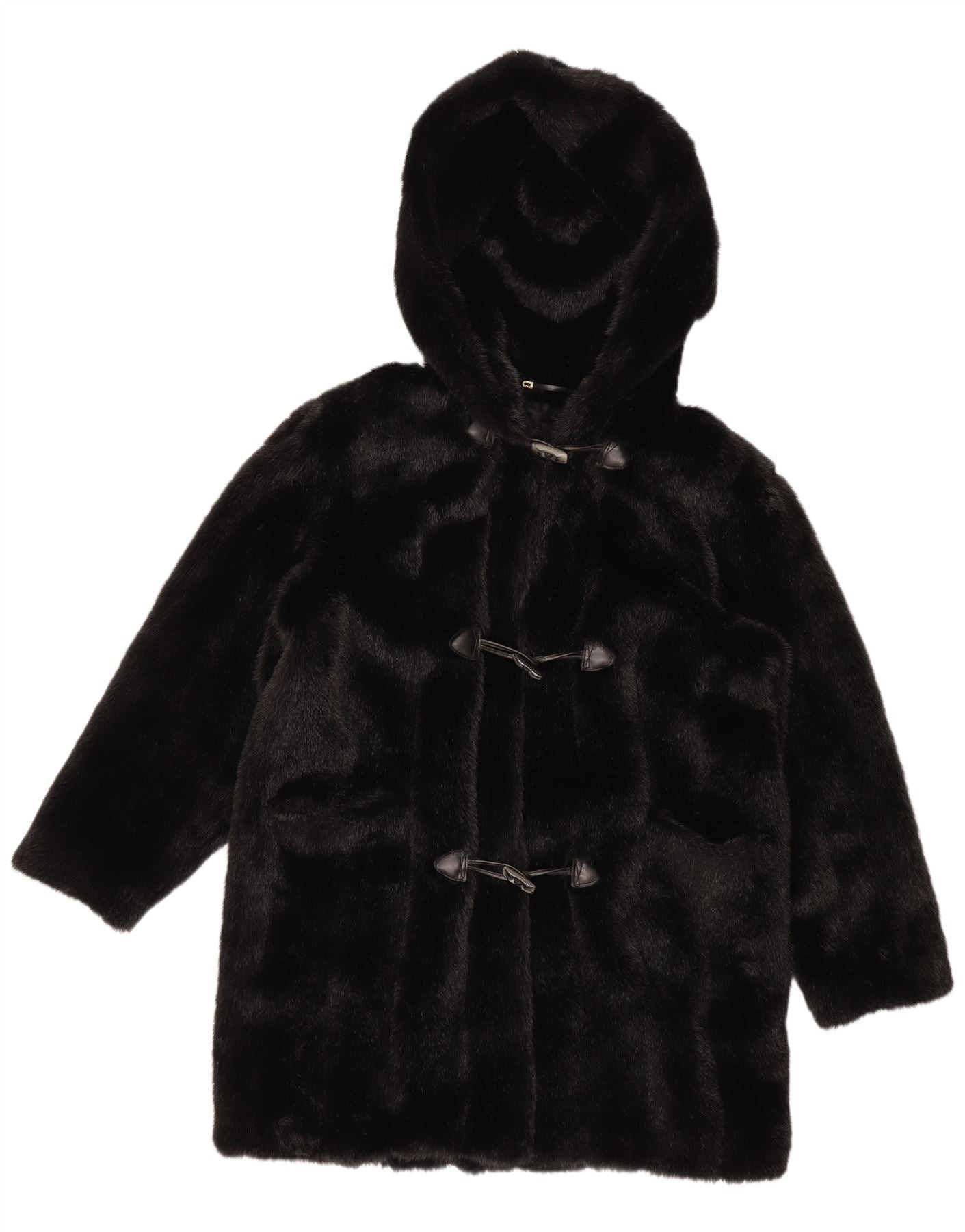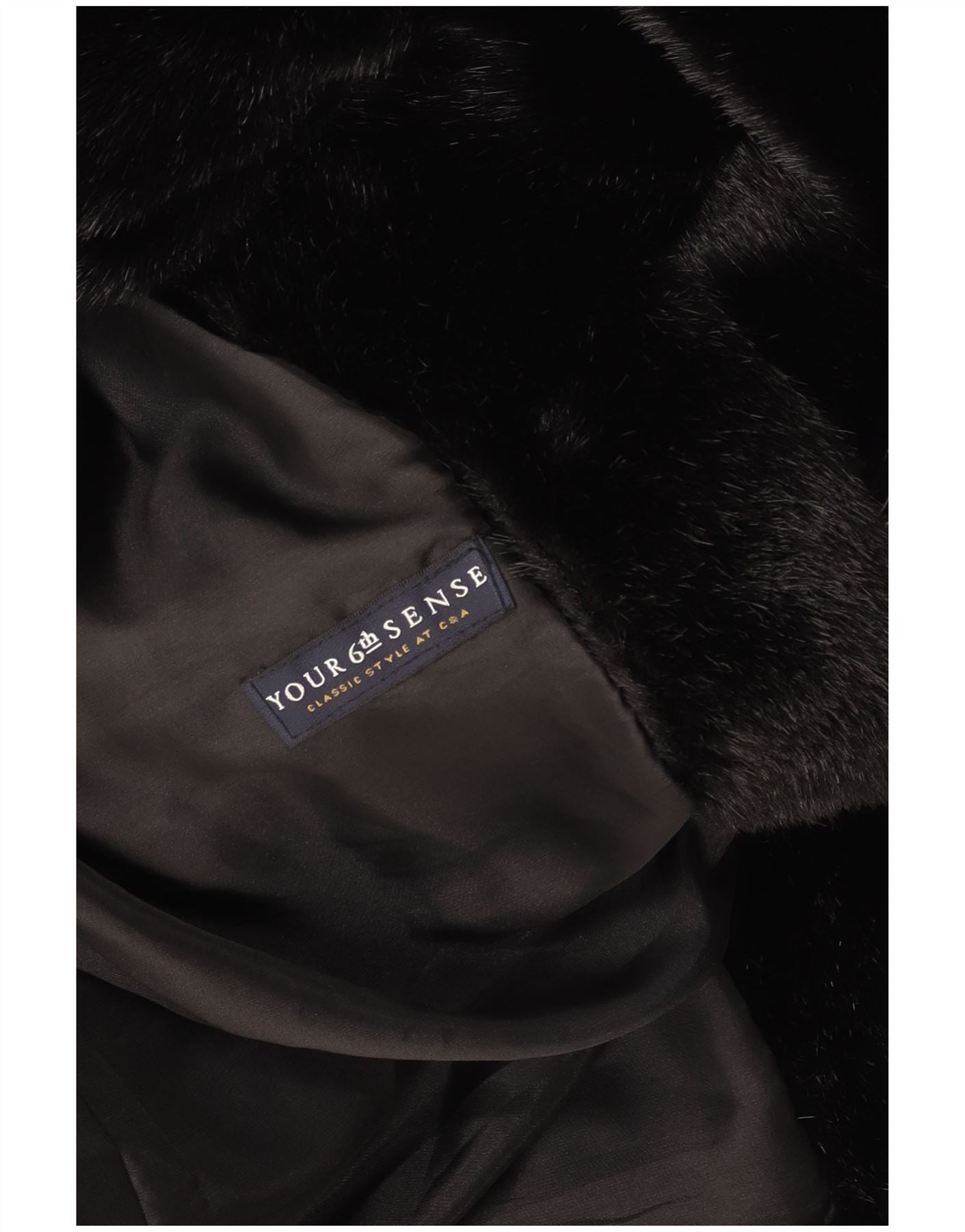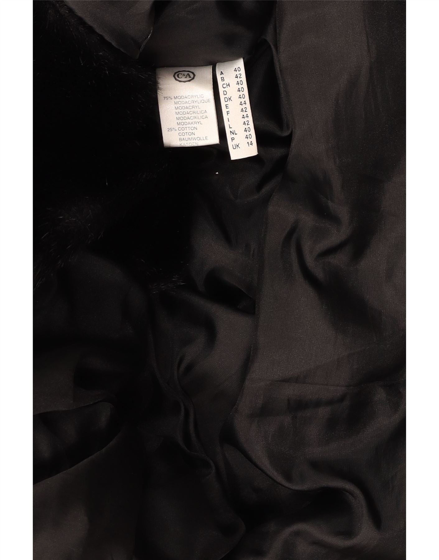 Casaco feminino de pele sintética com capuz C&A UK 14 Modacryl preto médio