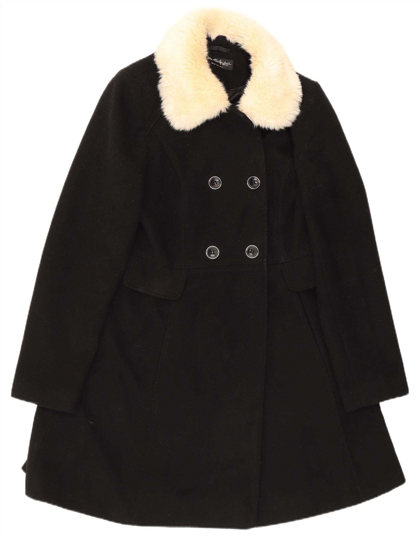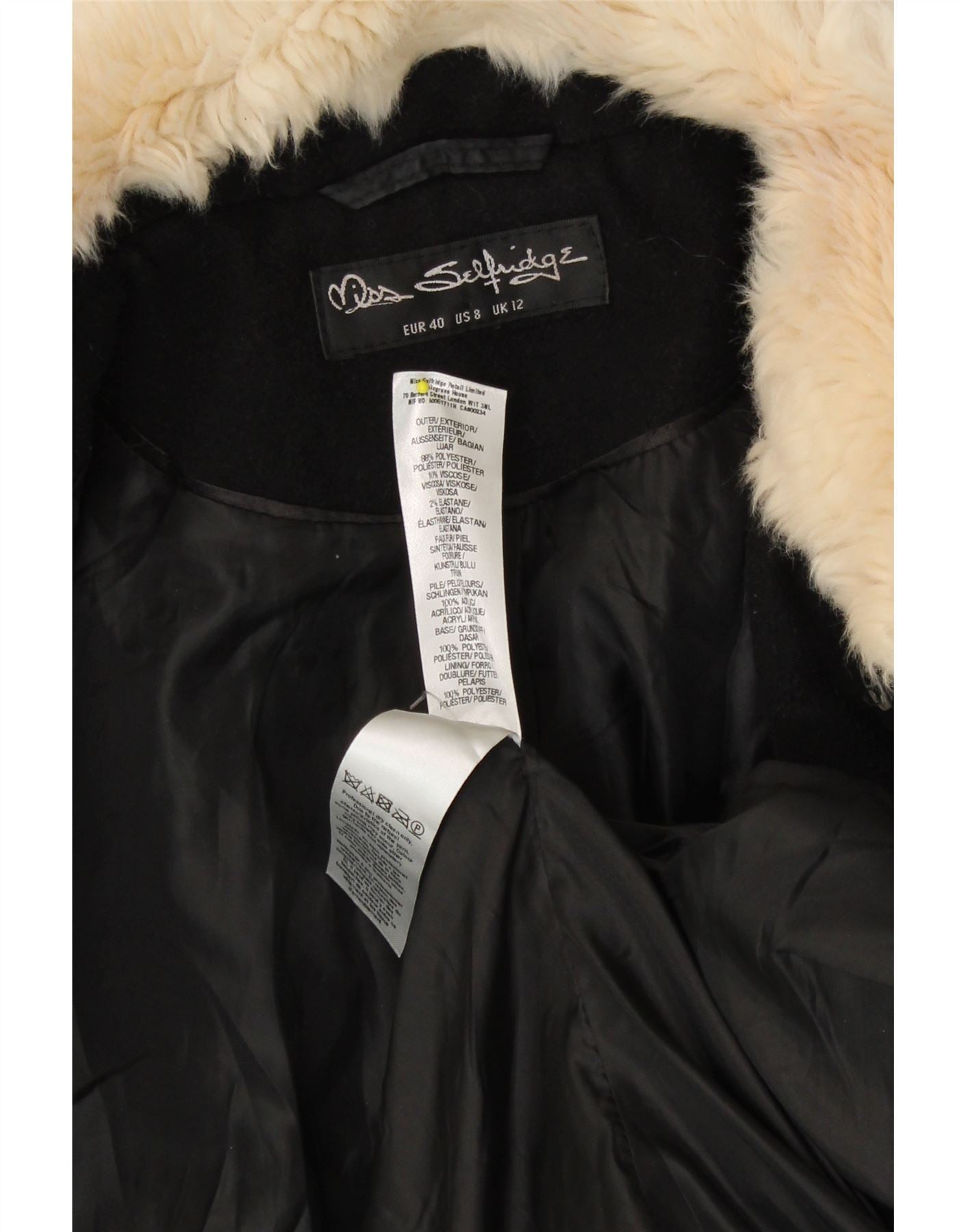 Casaco feminino MISS SELFRIDGE com peito duplo UK 12 poliéster preto médio