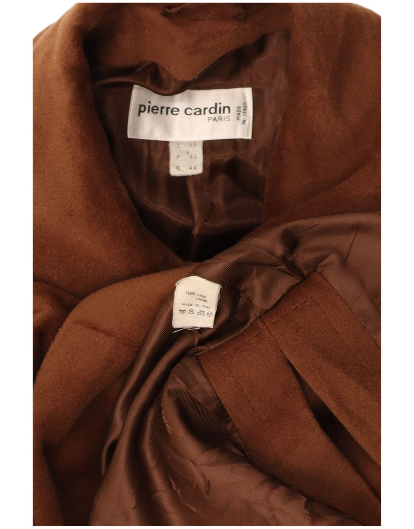 Casaco feminino PIERRE CARDIN com peito duplo IT 46 grande lã marrom