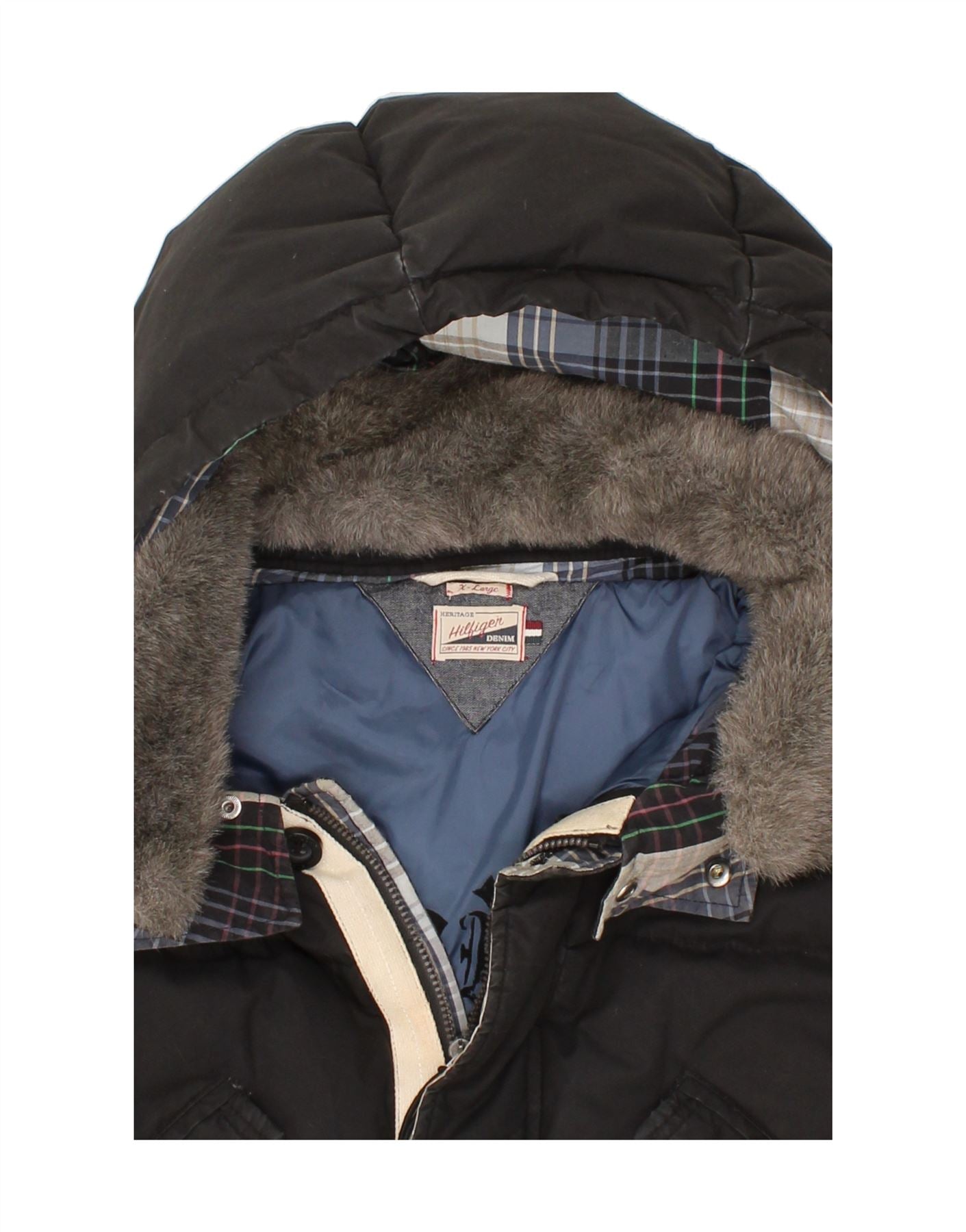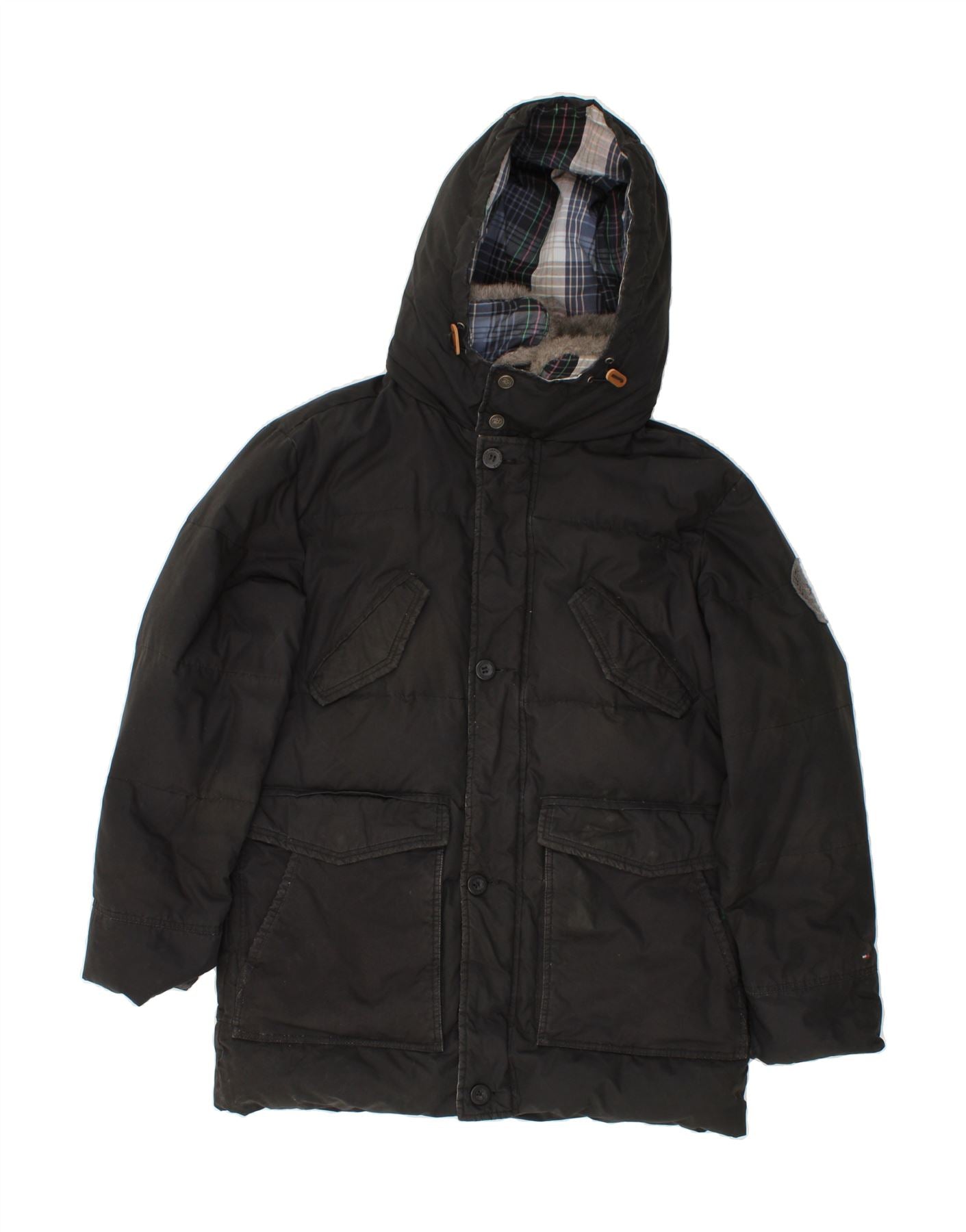 Casaco masculino acolchoado com capuz TOMMY HILFIGER UK 42 XL preto nylon