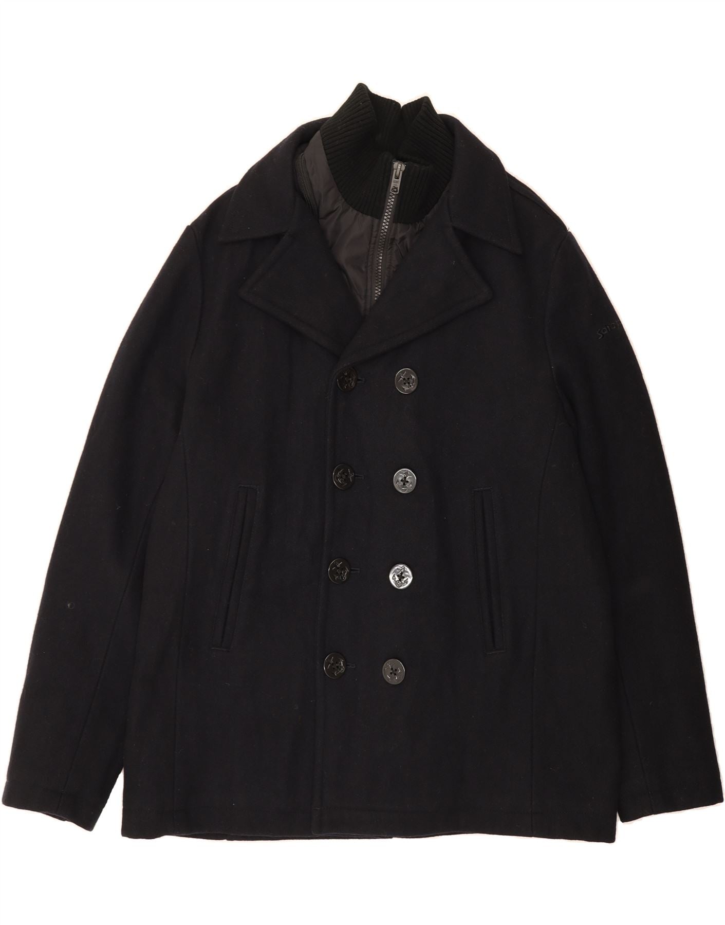 Casaco masculino SCHOTT Pea Coat UK 40 grande lã azul marinho