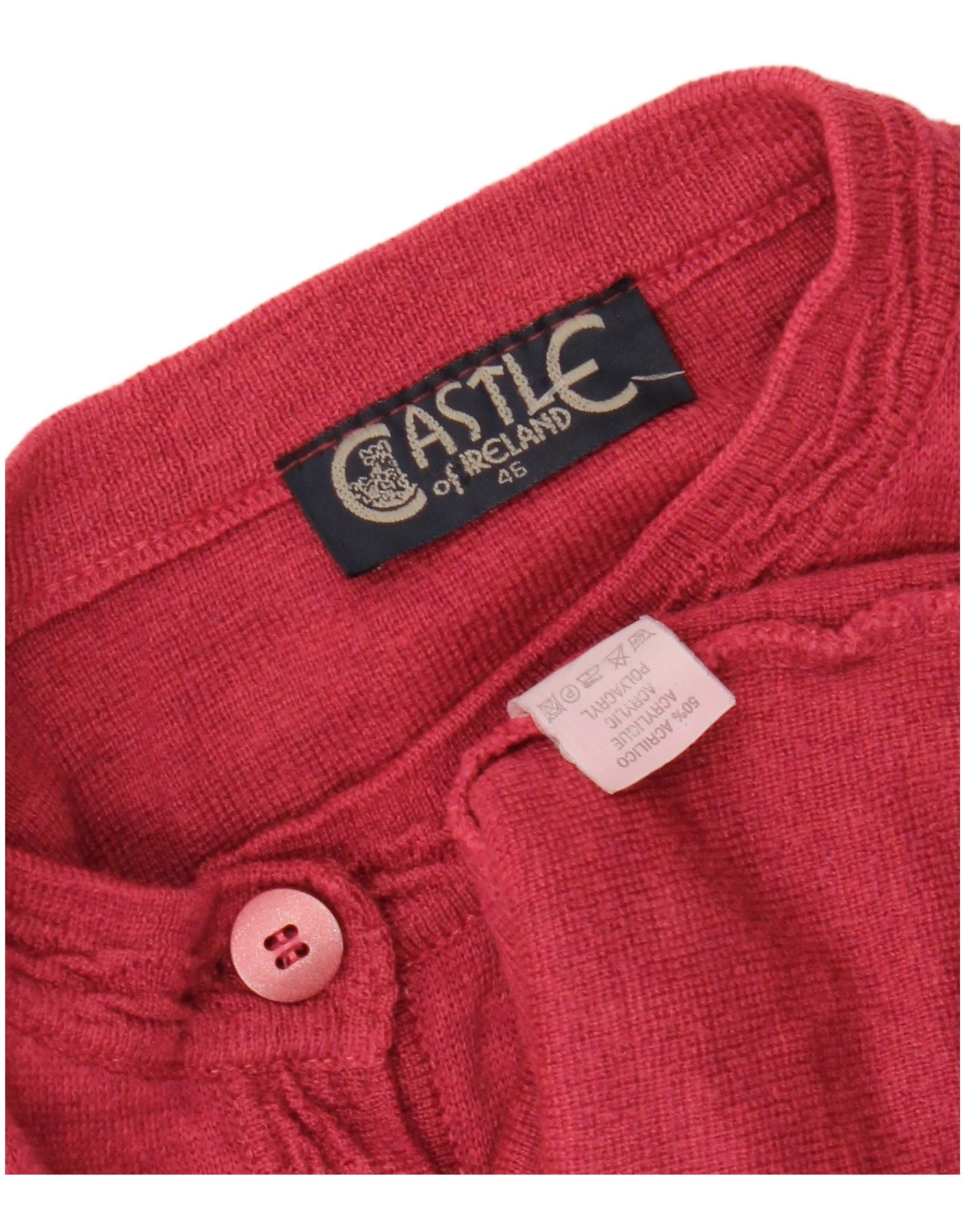 Suéter cardigã feminino CASTLE OF IRELAND Reino Unido 16 grande lã rosa