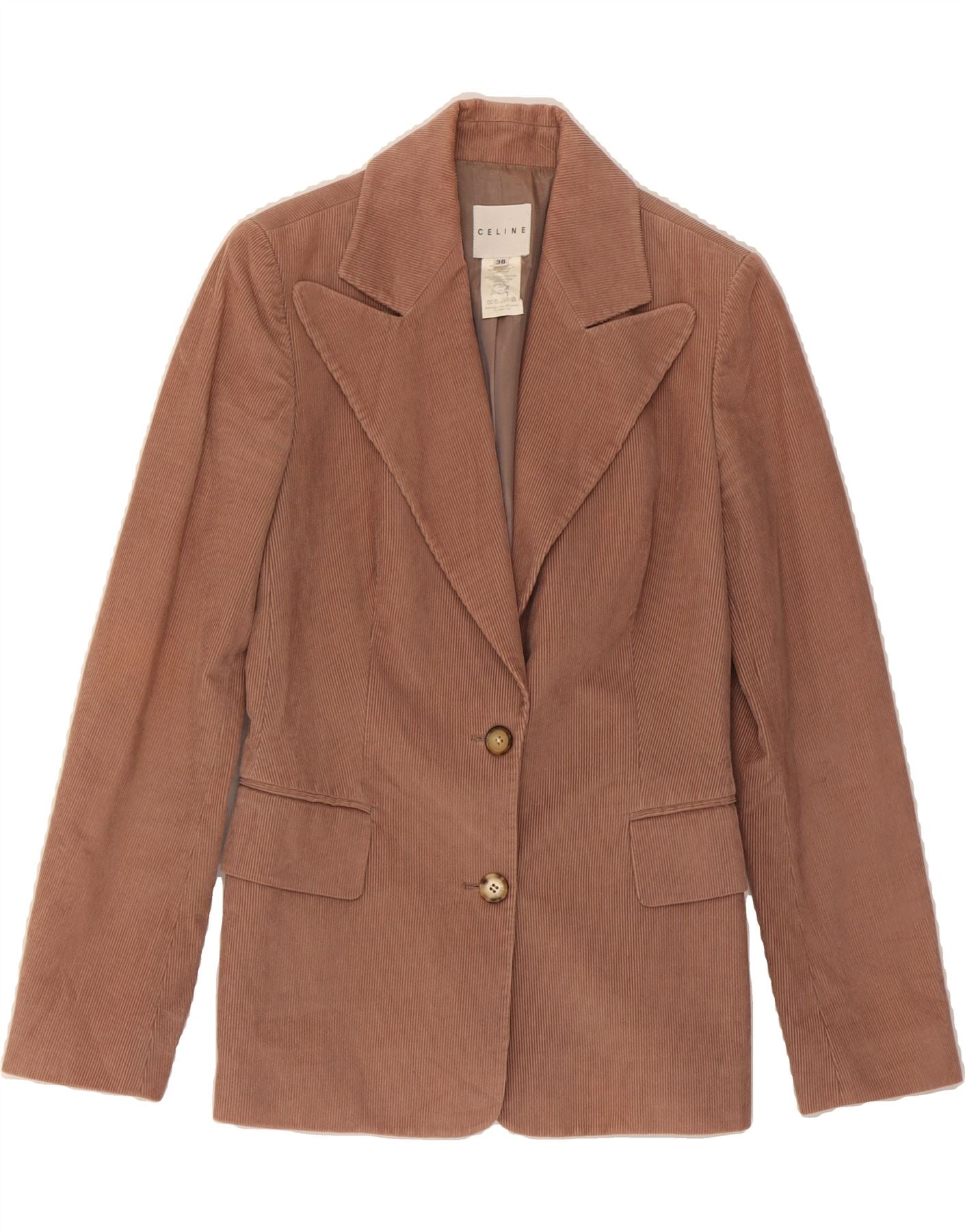 CELINE Jaqueta blazer feminina de veludo cotelê com 2 botões UE 38 algodão rosa médio