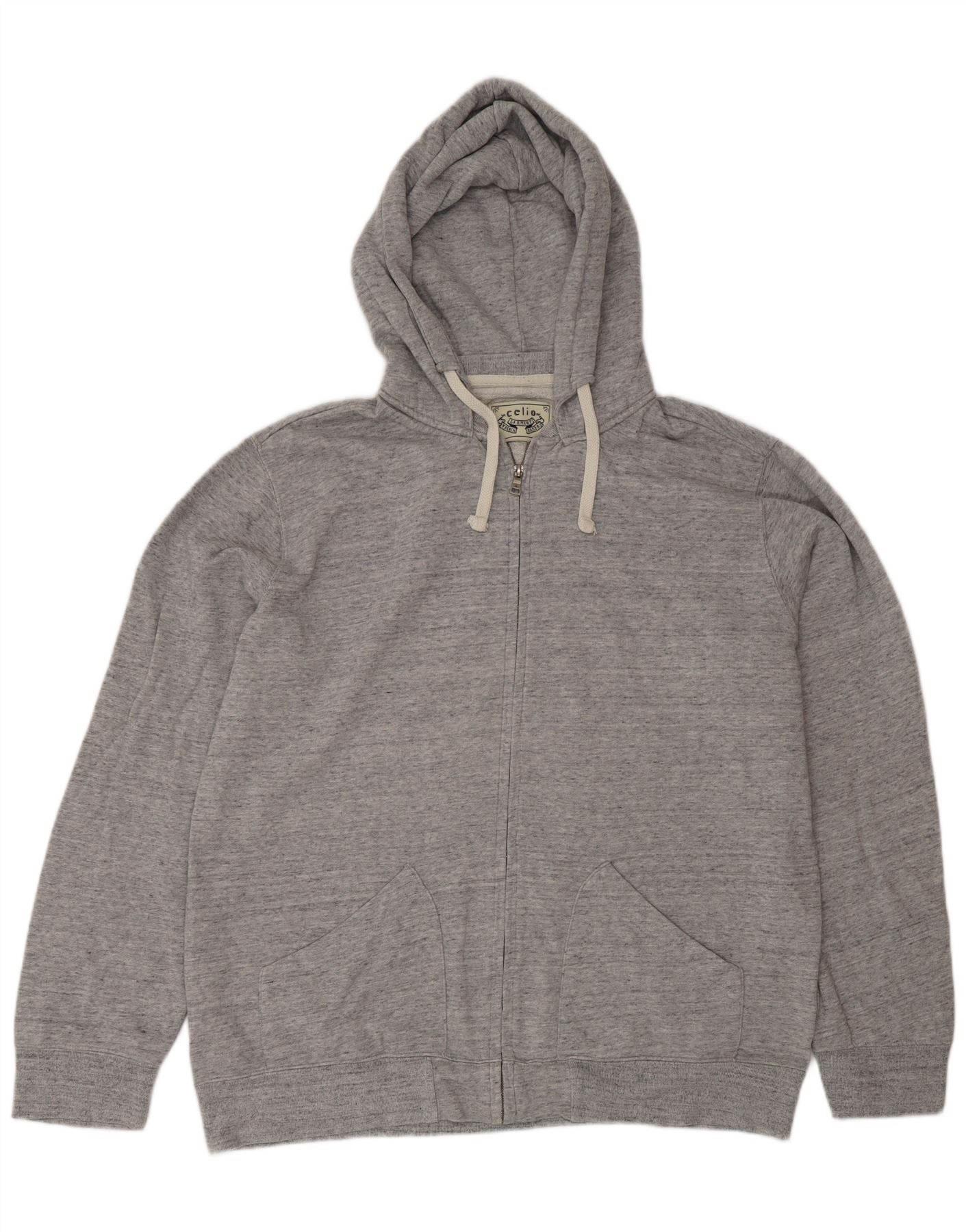 Suéter Celio masculino com capuz e zíper 2XL algodão manchado cinza