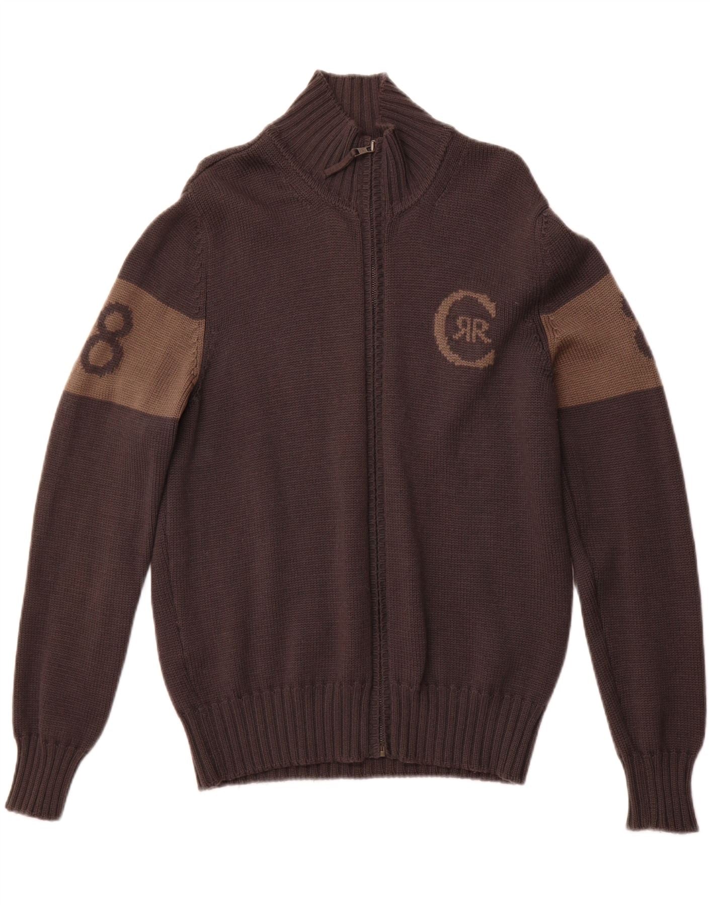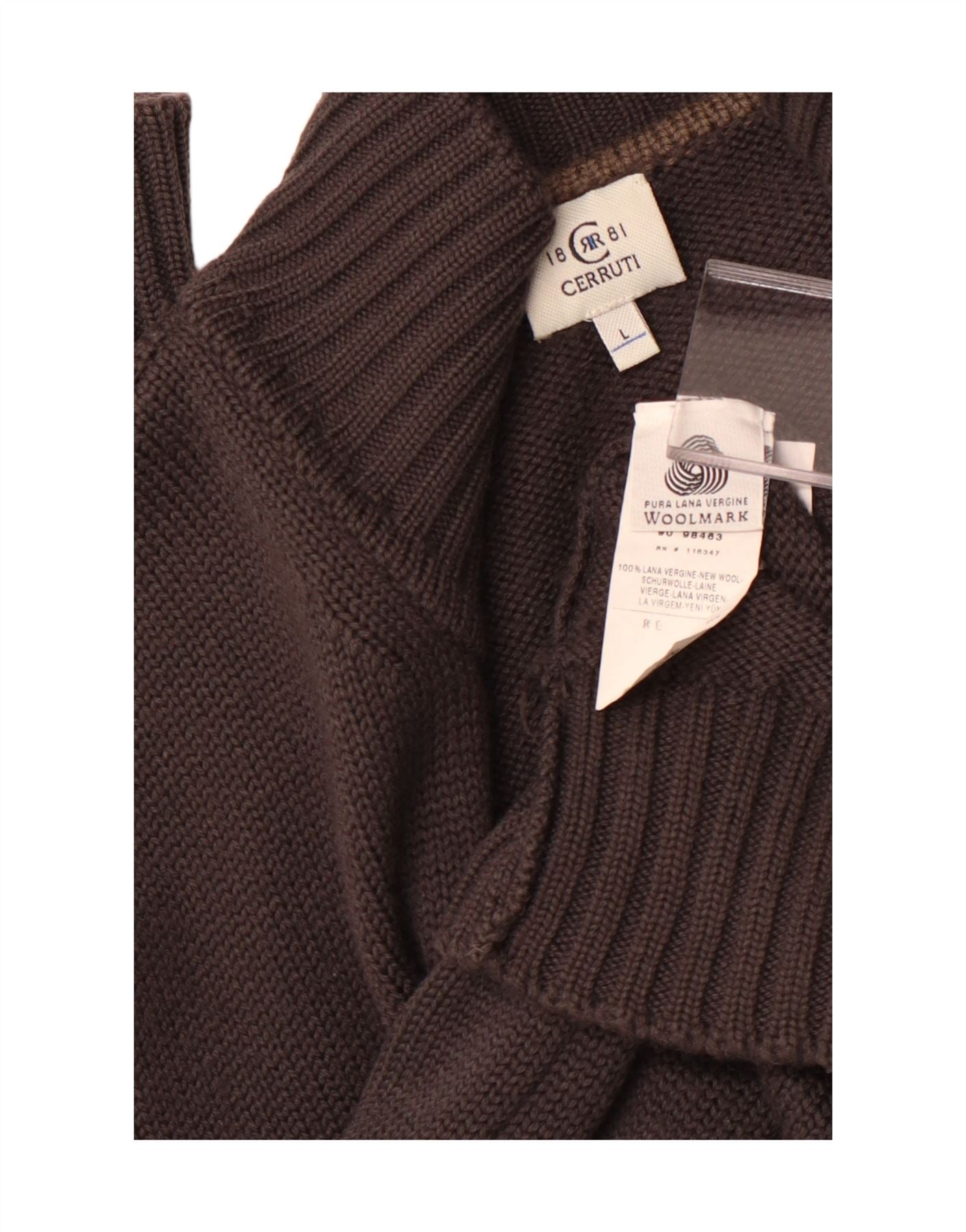 Suéter cardigã gráfico masculino CERRUTI 1881 grande cinza colorido bloco de lã nova