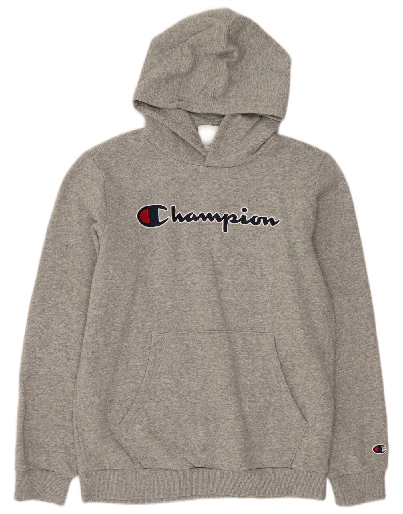 CHAMPION Meninos moletom com capuz gráfico 13-14 anos XL cinza algodão
