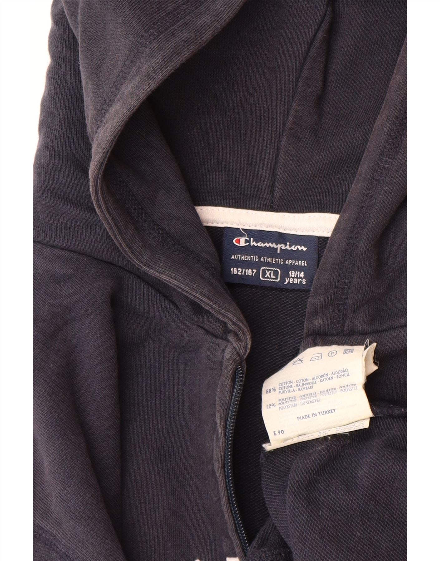 CHAMPION Suéter masculino com capuz e zíper gráfico 13-14 anos XL azul marinho algodão