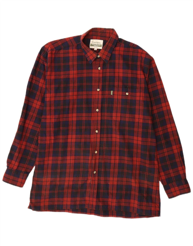 CAMPEÃO Camisa masculina de flanela com ajuste confortável XL de algodão xadrez vermelho