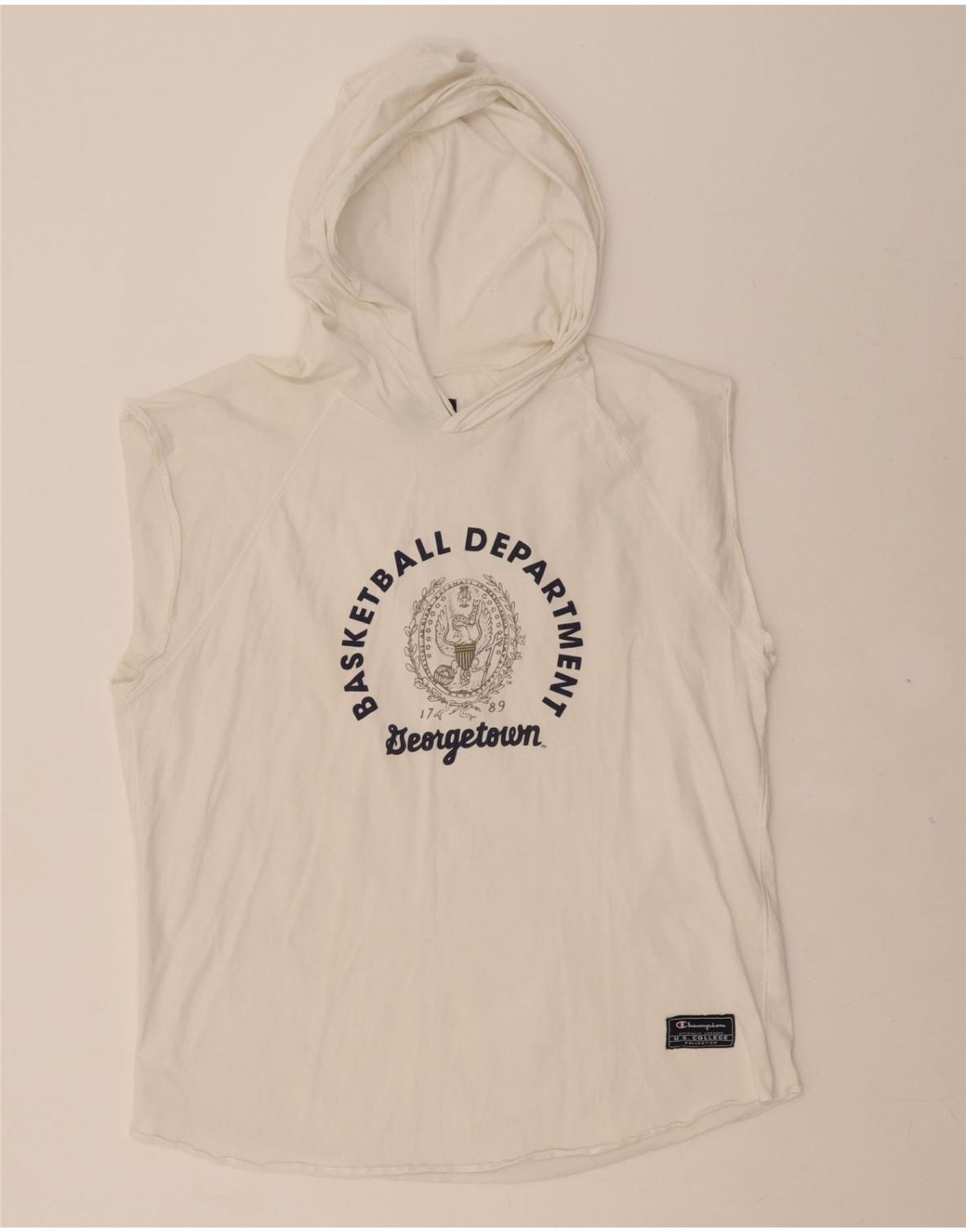CHAMPION Mens Georgetown Colete Gráfico com Capuz Top XL Algodão Branco