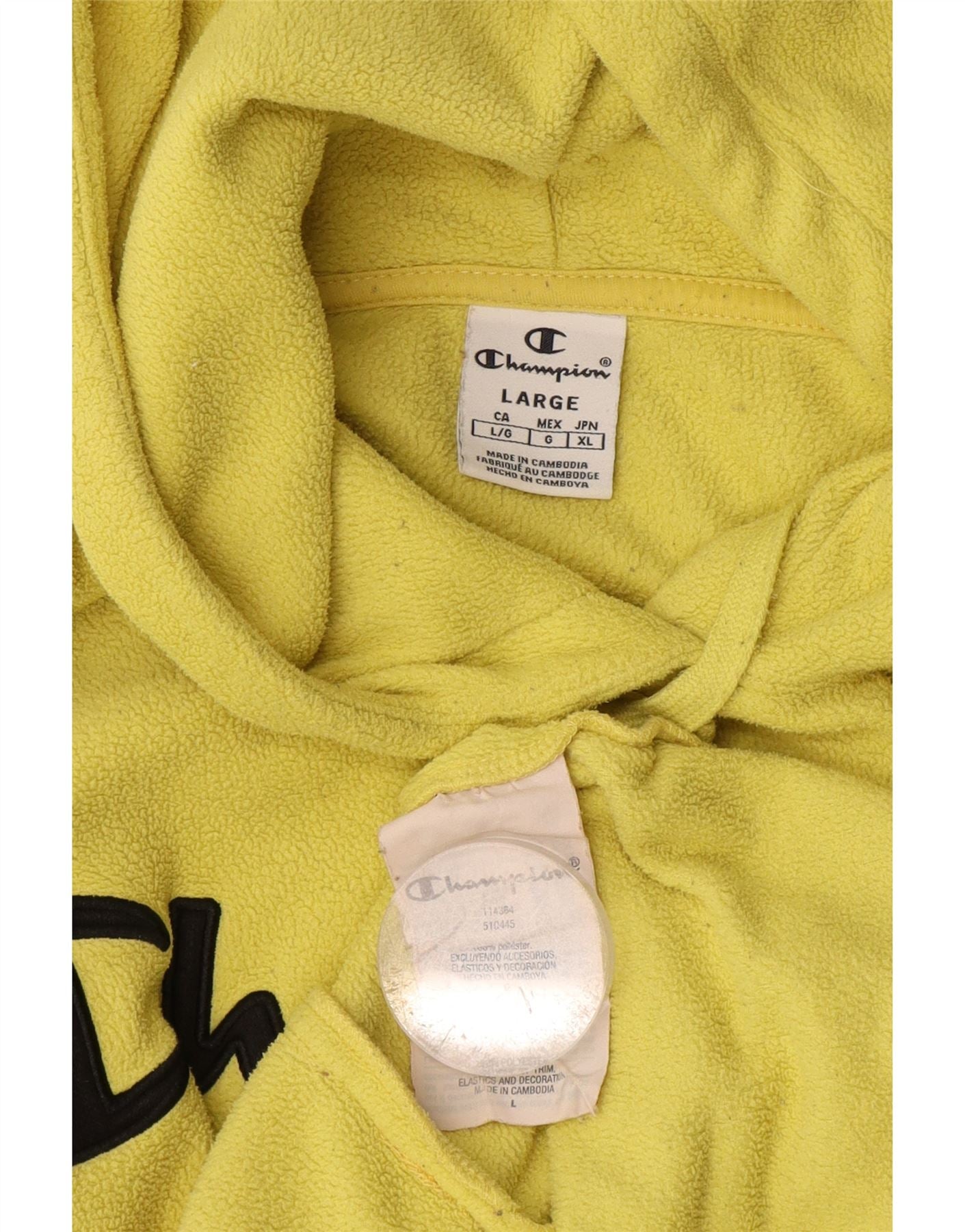 Home > Roupas de campeão vintage > masculino > Velo > Suéter masculino de lã com capuz gráfico Champion grande poliéster amarelo