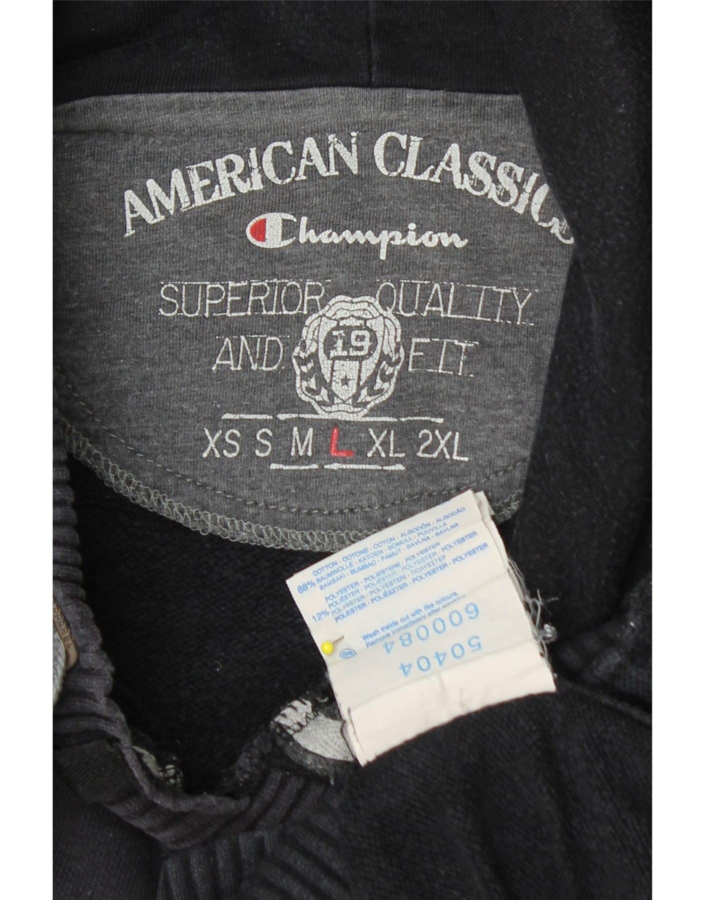 Home > Roupas de campeão vintage > masculino > Capuz > CHAMPION Suéter masculino com capuz gráfico grande algodão preto