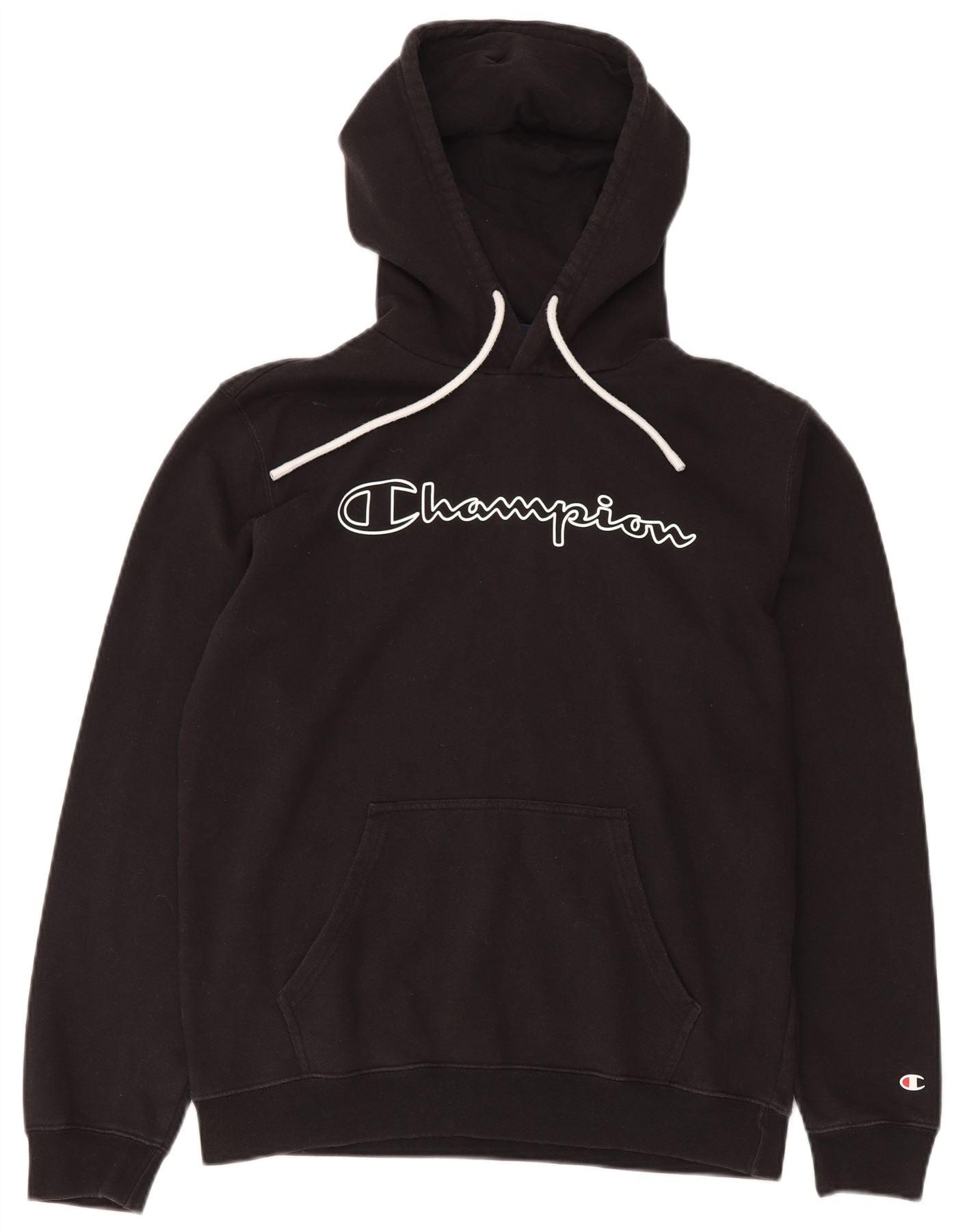 Home > Roupas de campeão vintage > masculino > Capuz > CHAMPION Suéter masculino com capuz gráfico grande algodão preto