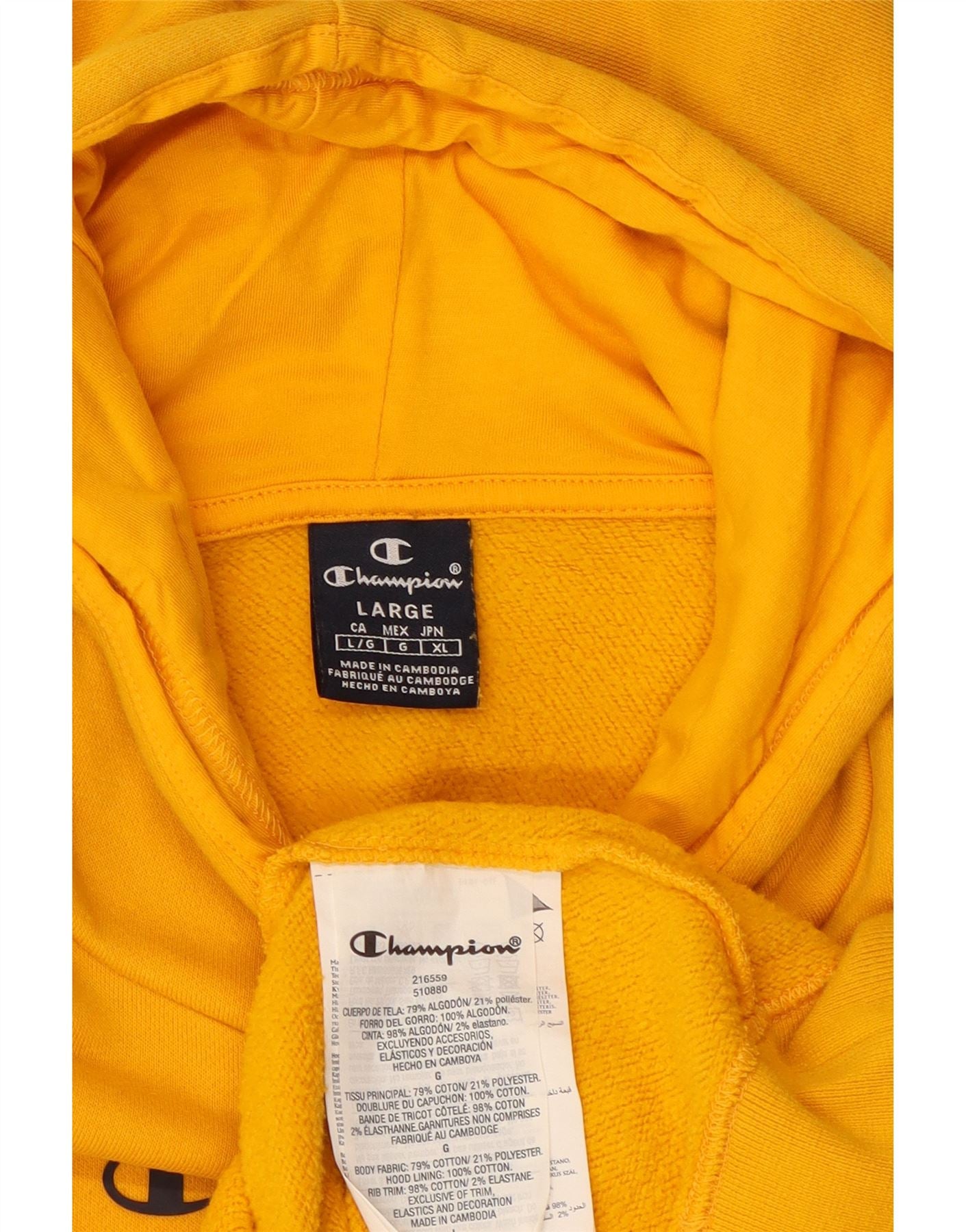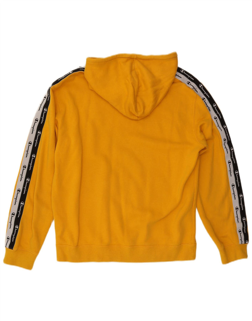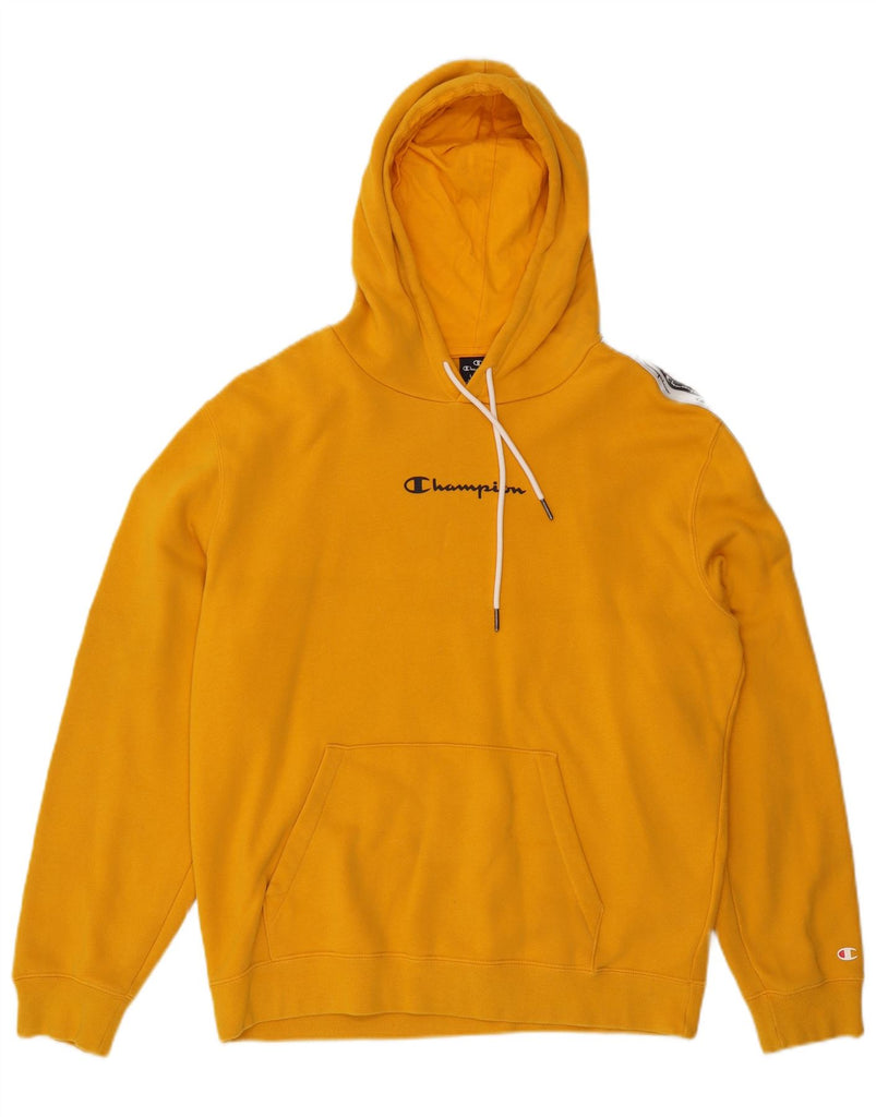 CHAMPION Mens Graphic Hoodie Jumper Large Yellow Colourblock Cotton