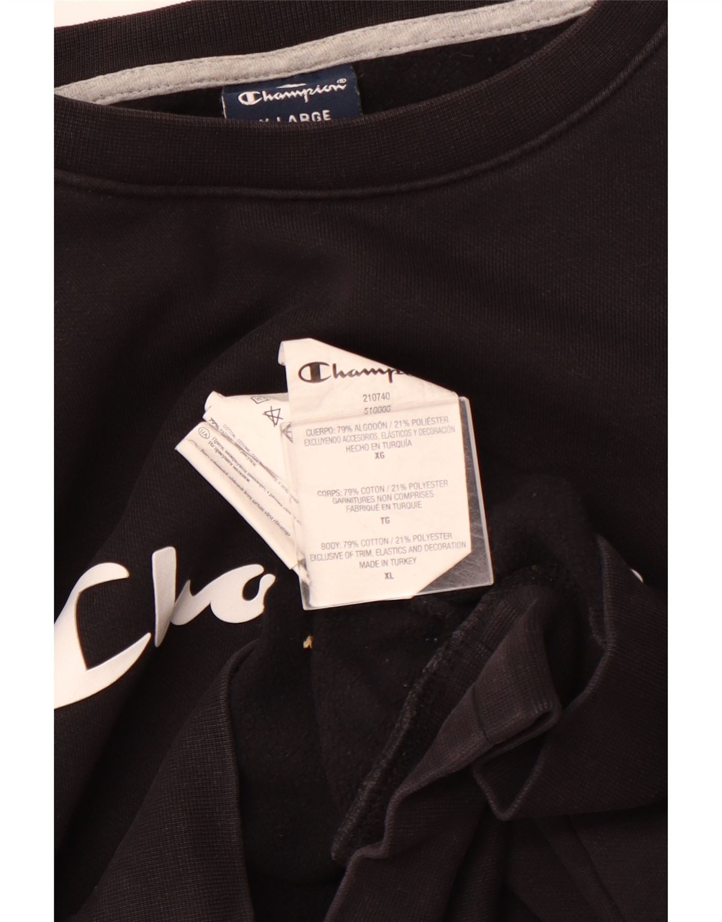 CHAMPION Masculino moletom gráfico Jumper XL preto algodão esportivo