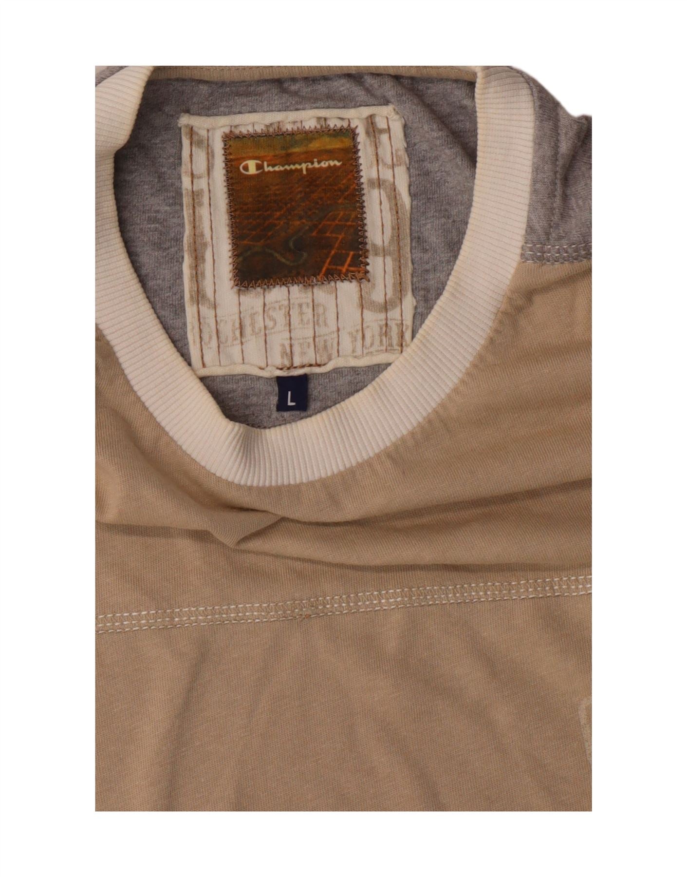 Home > Roupas de campeão vintage > masculino > Camisetas > Camiseta masculina estampada Champion grande bloco colorido bege