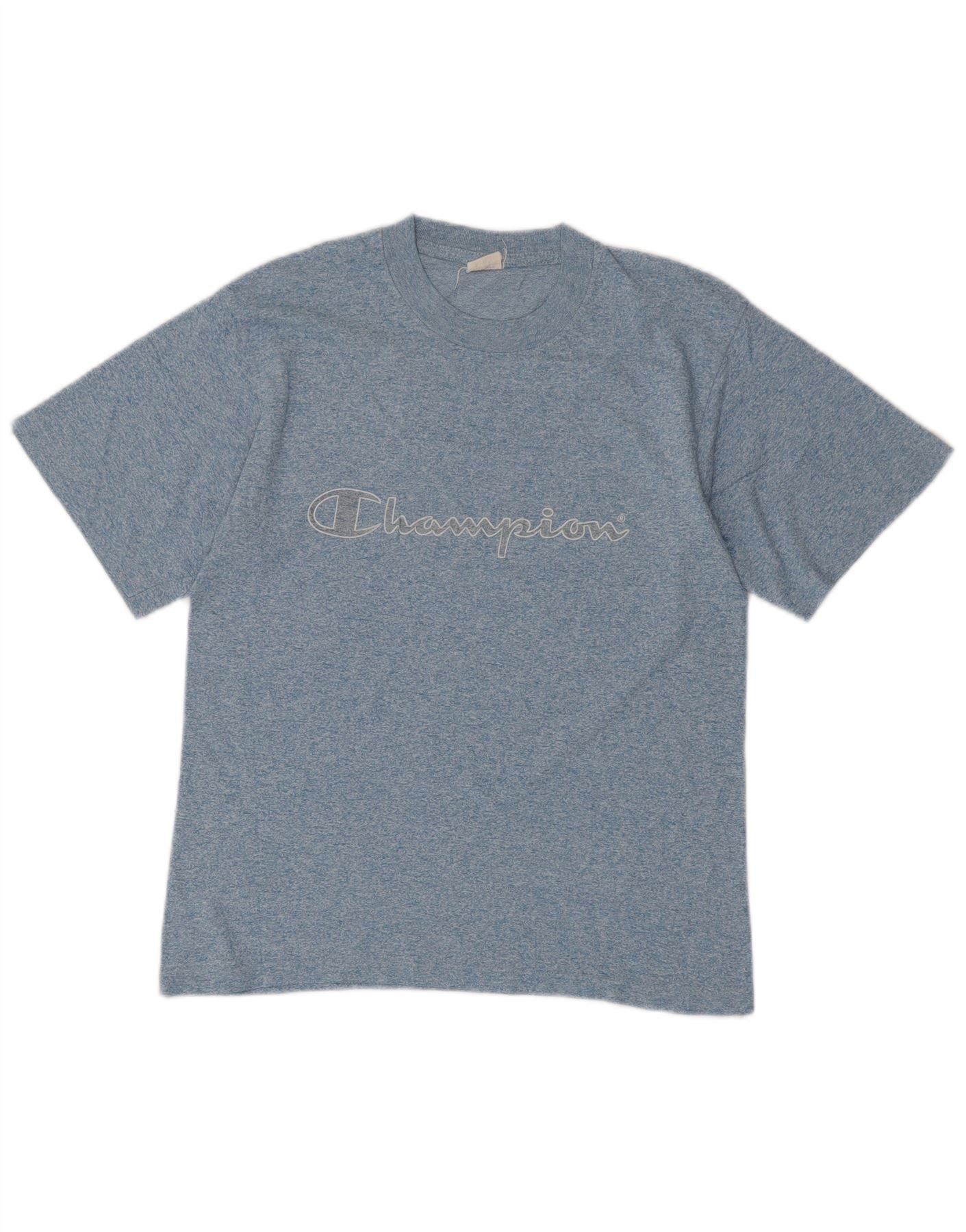 Home > Roupas de campeão vintage > masculino > Camisetas > Camiseta masculina com estampa gráfica Champion pequeno algodão manchado azul