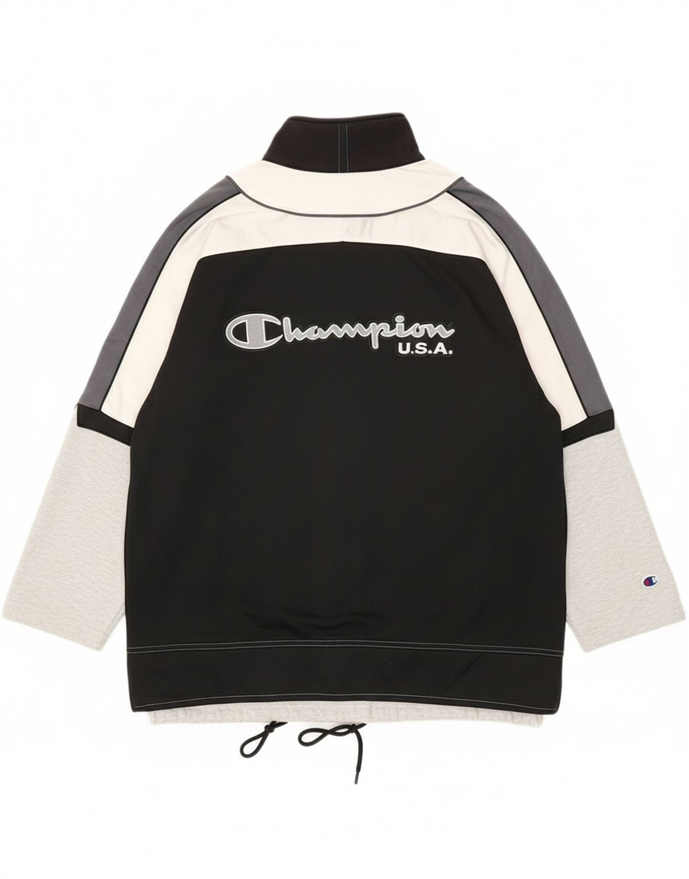 Jaqueta masculina de agasalho gráfico Champion grande preta colorida esportiva