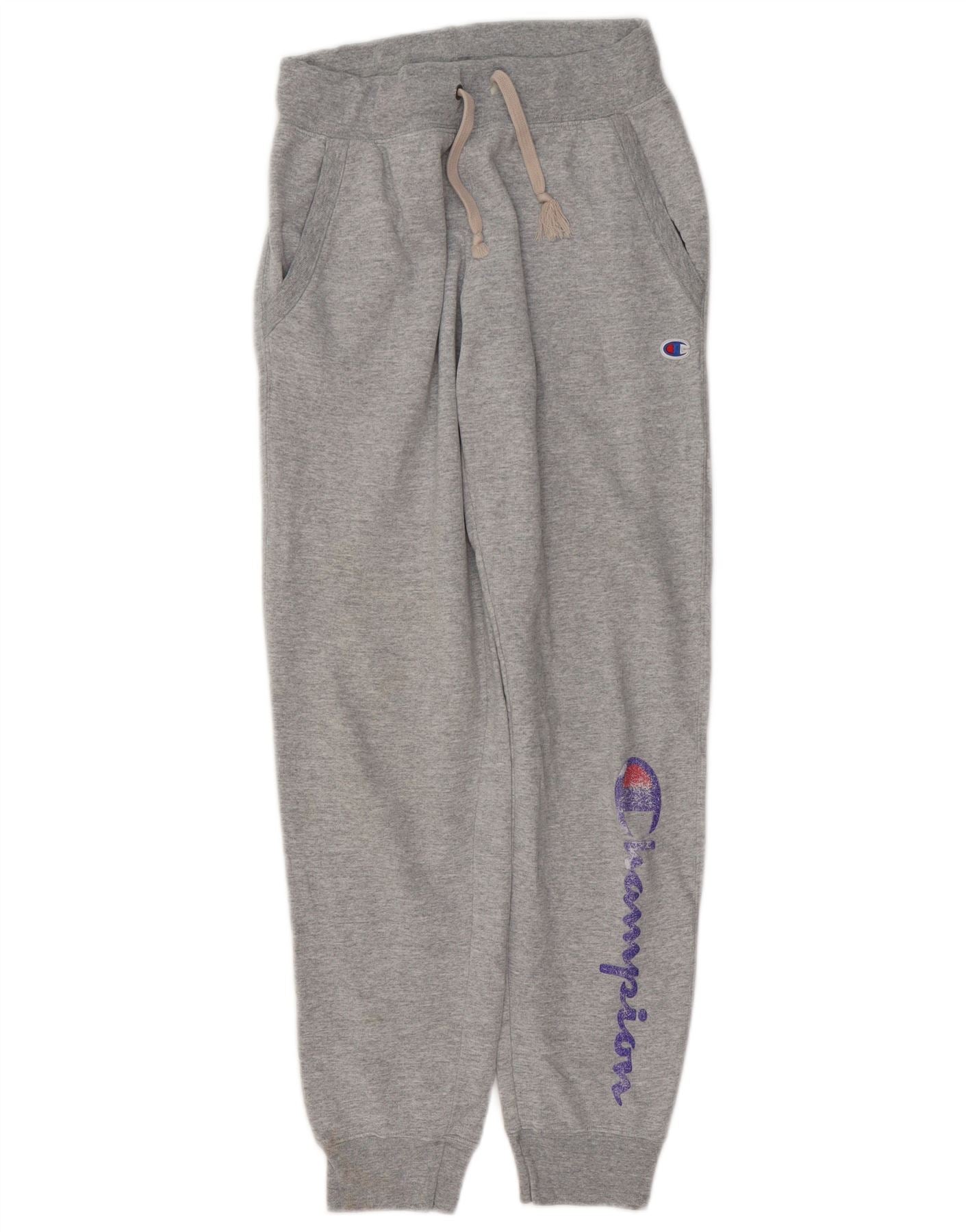 Home > Roupas de campeão vintage > masculino > Calça > CHAMPION Mens Graphic Tracksuit Trousers Joggers Small Grey Flecked Cotton