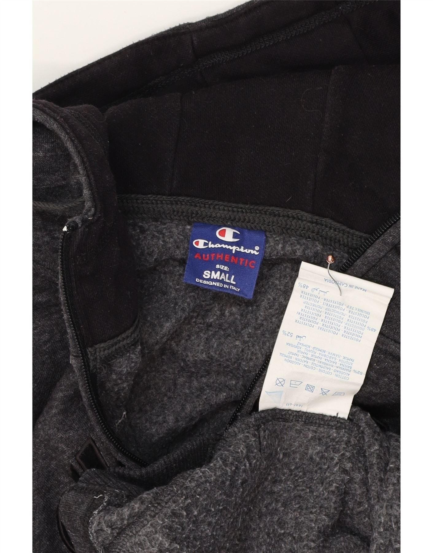 Home > Roupas de campeão vintage > masculino > Capuz > Suéter masculino com capuz e zíper gráfico CHAMPION pequeno algodão manchado cinza