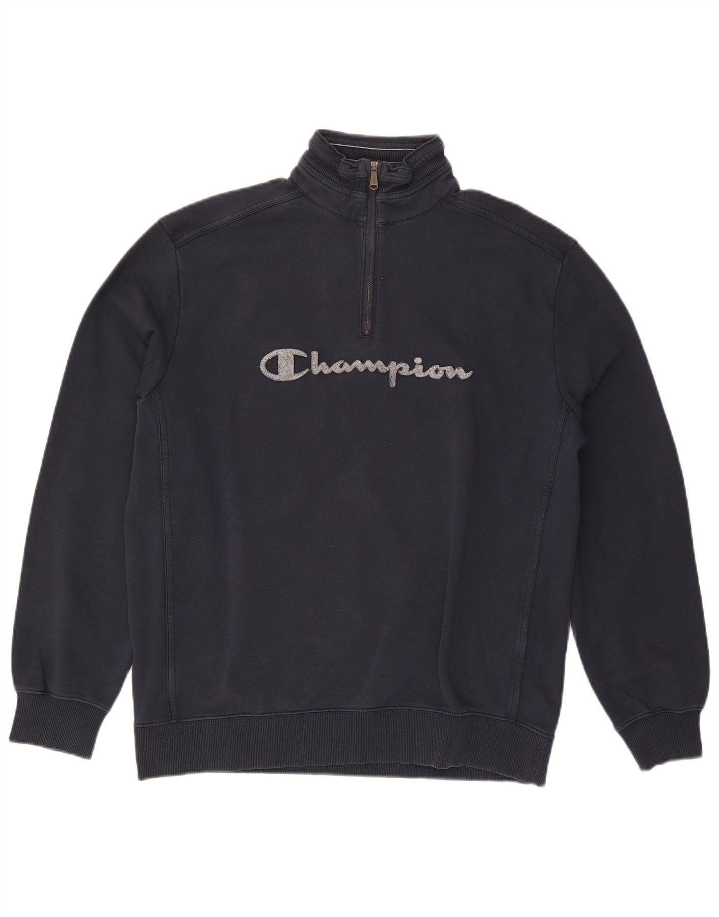 Home > Roupas de campeão vintage > masculino > Moletons > CHAMPION Suéter masculino com capuz estampado com zíper e gola 2XL azul marinho