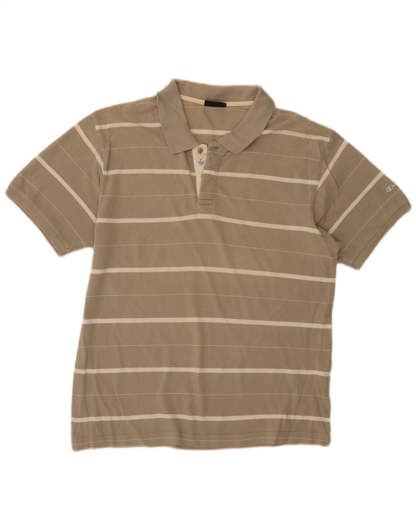 Home > Roupas de campeão vintage > masculino > Camisas pólo > Camisa polo masculina Champion médio bege listrado algodão