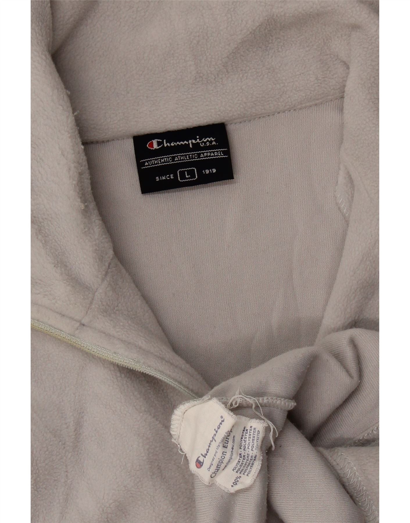Home > Roupas de campeão vintage > masculino > Velo > Suéter masculino Champion de lã com zíper e gola grande poliéster cinza