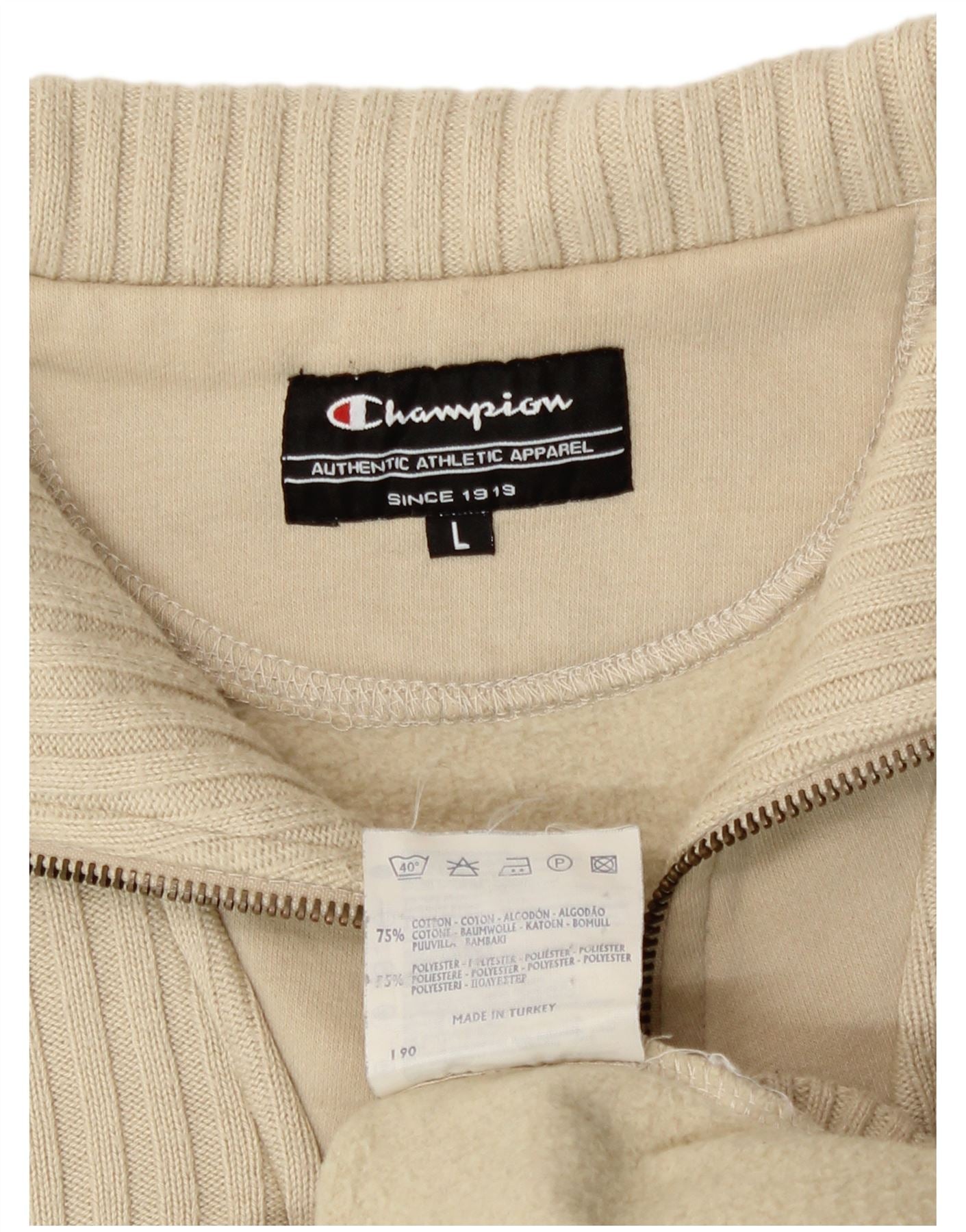 Home > Roupas de campeão vintage > masculino > Moletons > Suéter masculino Champion com zíper e gola grande de algodão bege