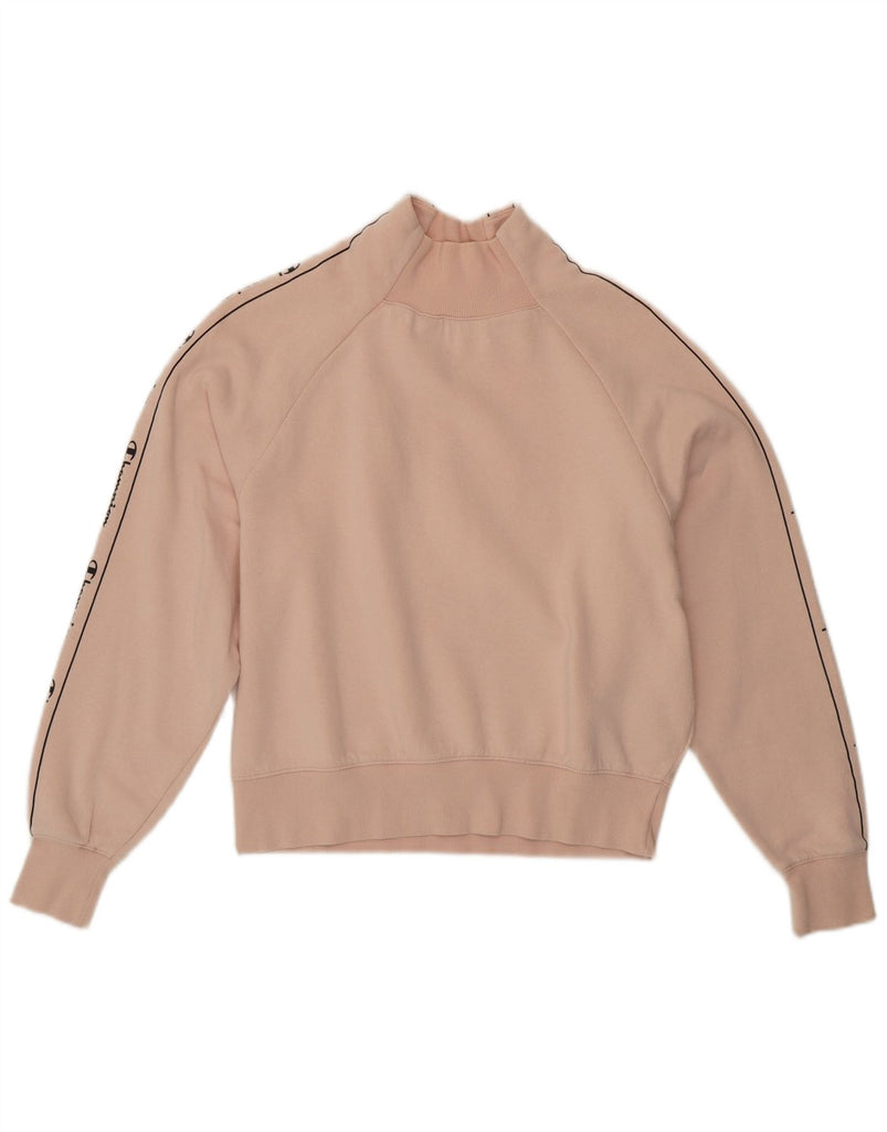 CHAMPION Suéter feminino cropped com estampa gráfica Reino Unido 10 pequeno algodão rosa