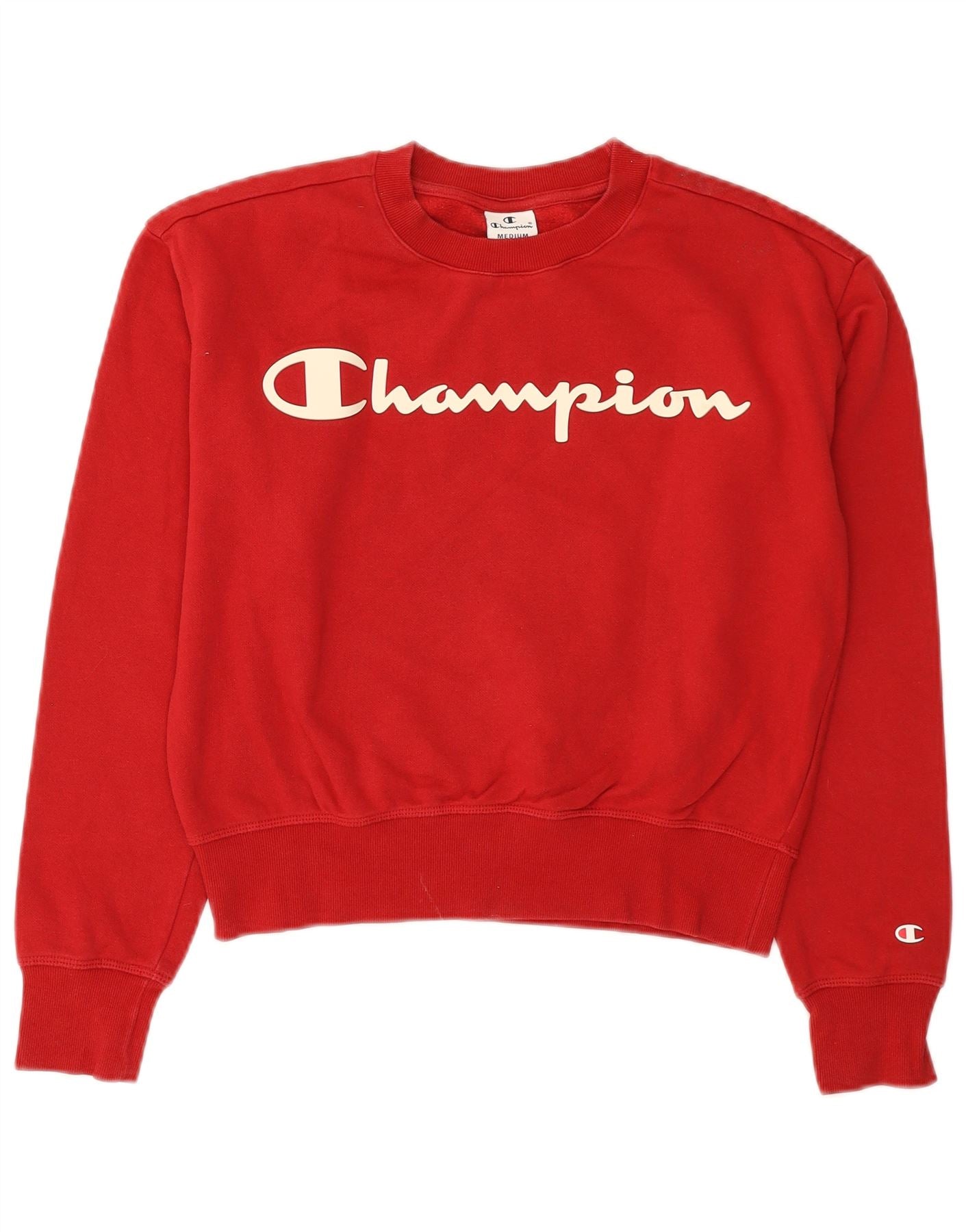CHAMPION Suéter feminino cropped gráfico Reino Unido 14 médio vermelho