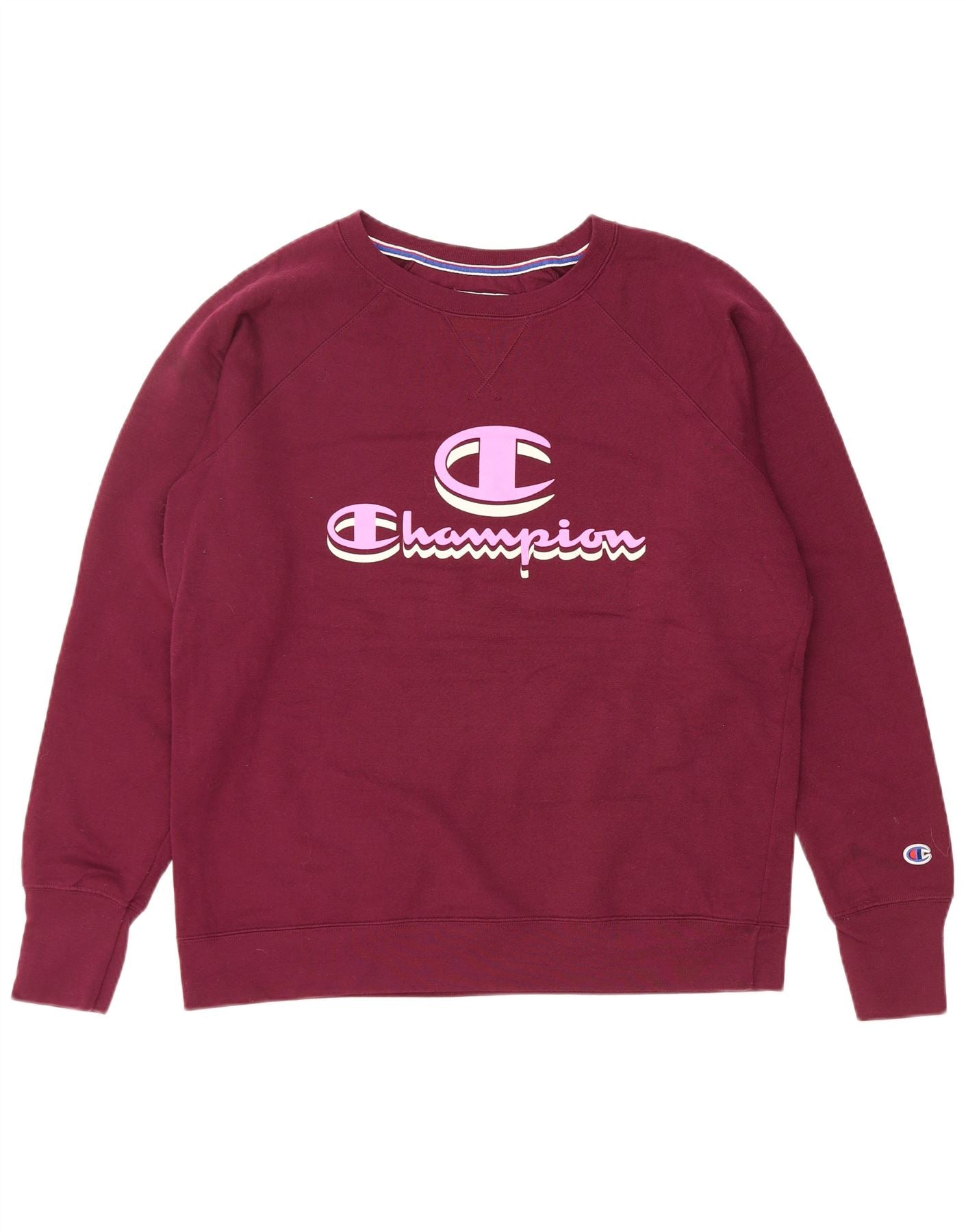 CHAMPION Suéter gráfico feminino com capuz Reino Unido 18 XL algodão borgonha