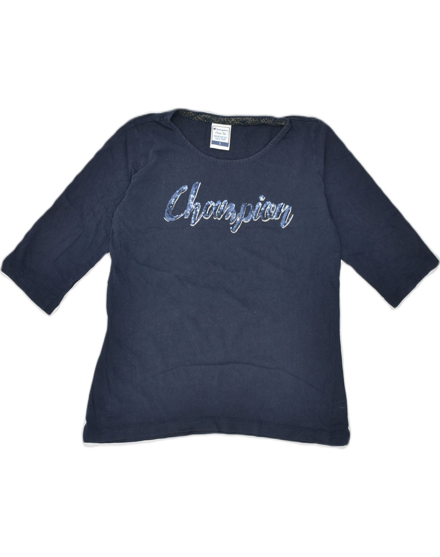 CHAMPION Top gráfico feminino manga 3/4 Reino Unido 10 pequeno algodão azul marinho